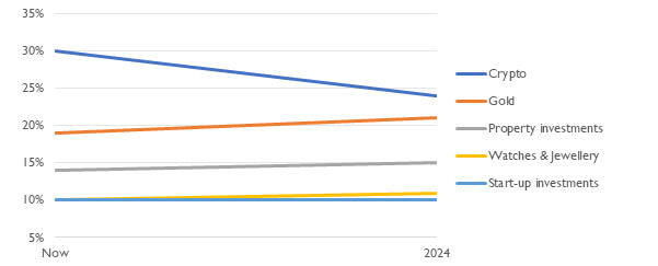Whilst many investors look to alternative investments to bolster their portfolio returns, the survey looked at the most popular alternative investments in 2023 and how this is set to change in the next year. 30% of UK investors currently hold crypto investments but this is set to drop to 24% by 2024 as many reassess whether decentralised currencies are a good store of wealth in the long-term.