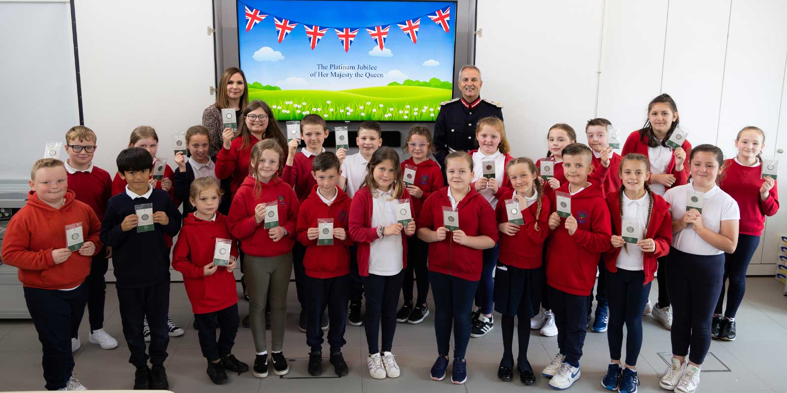 The Royal Mint has hosted school children from Coed Y Dderwen in Merthyr Tydfil for a special presentation of commemorative Platinum Jubilee 50p coins, as part of celebrations to mark Her Majesty’s historic seventy years on the throne.