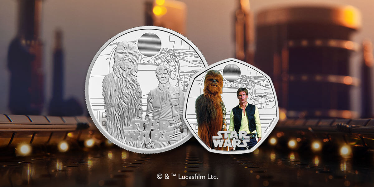 The coin features Han Solo™, who rose from an impoverished childhood on the streets of Corellia to become one of the heroes of the Rebel Alliance and Captain of the Millenium Falcon and Chewbacca™, a legendary Wookiee warrior and Han Solo’s long-time co-pilot.
