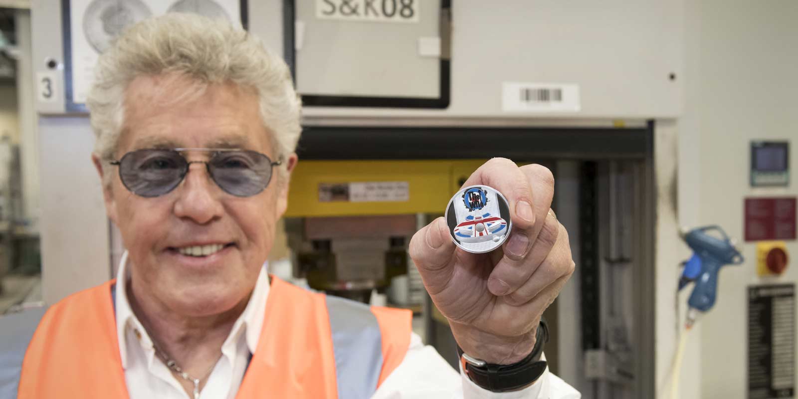 - To celebrate the launch of the coin, co-founder and lead singer of The Who, Roger Daltrey, visited The Royal Mint to strike one of the very first coins.