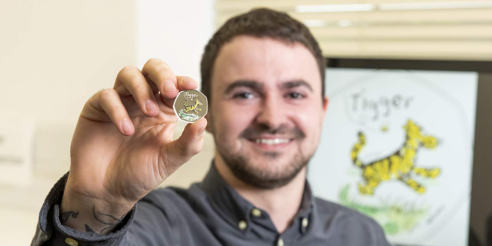 The Royal Mint’s designer Daniel Thorne remastered Tigger for a 50p piece, based on the original watercolour decorations of E.H. Shepard, first published in the A.A. Milne’s classic tales 95 years ago.