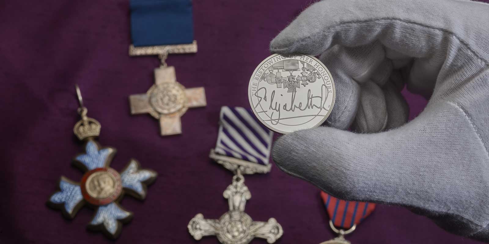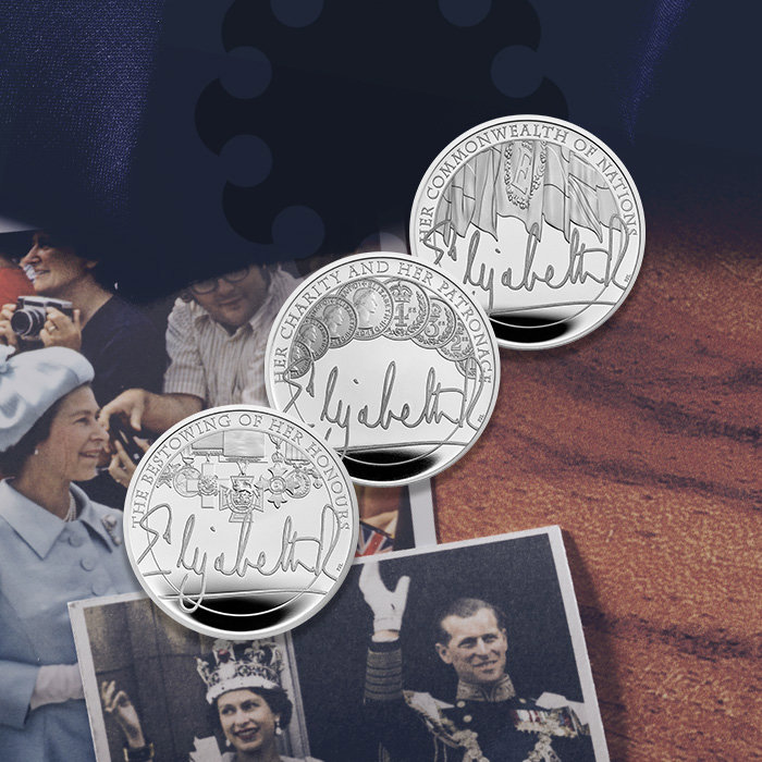 The first coin in the collection focuses on Her Majesty’s awards and honours, recognising individual service in many forms. The second coin highlights Her Majesty’s work with charities and as a patron, whilst the third and final coin celebrates the Commonwealth, a ‘family of nations’ she has championed throughout her reign.