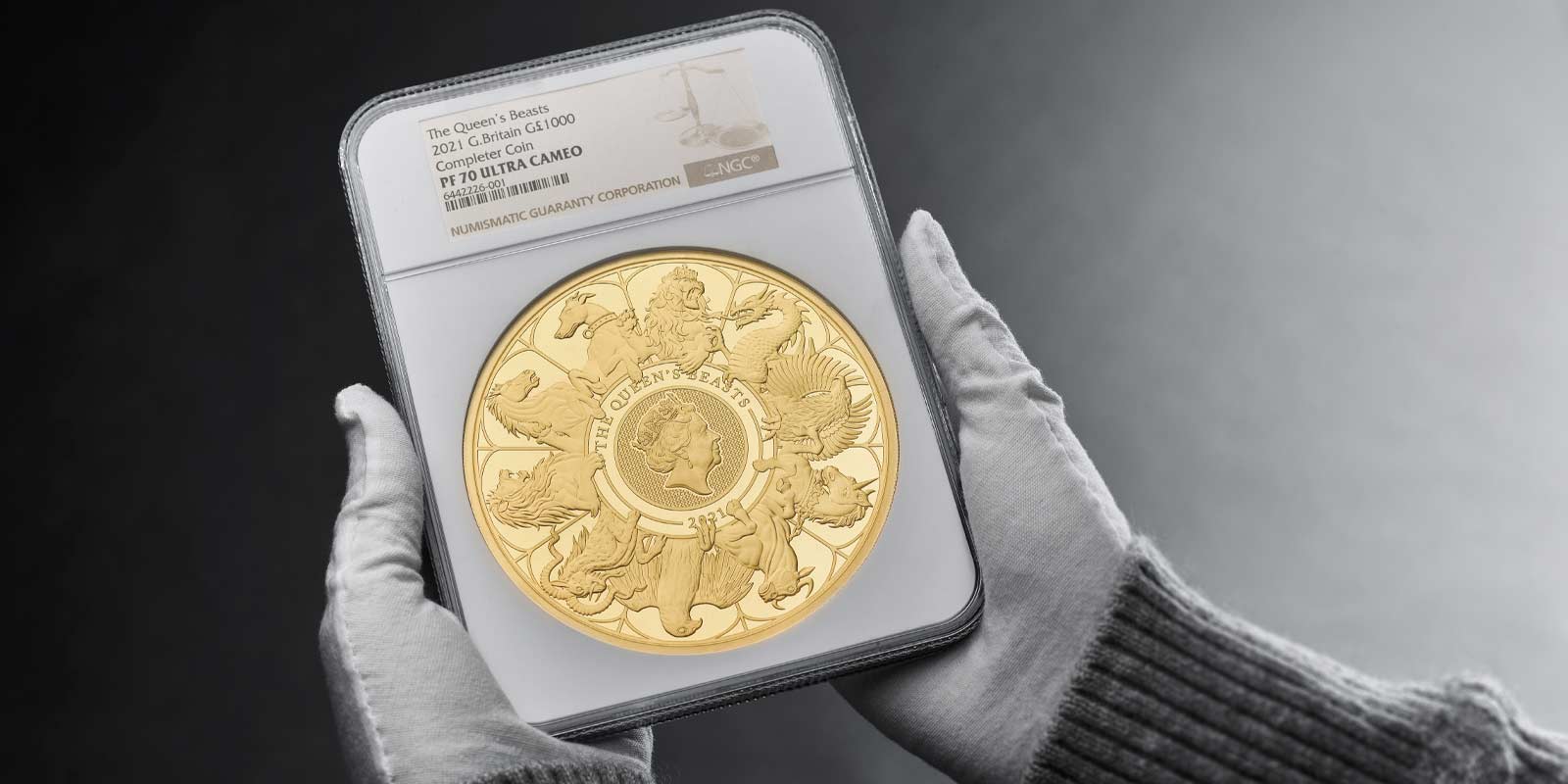 - Highlight items include a Kew Gardens gold 50p and a 1 kilo gold Queen’s Beasts Completer coin.