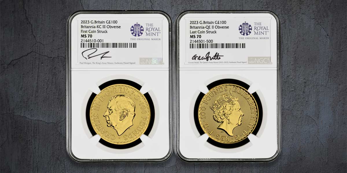 The notable auction will feature the last 500 coins struck under Her Late Majesty Queen Elizabeth II and the first 500 coins struck featuring His Majesty King Charles III of the 2022 Gold Sovereign, the 2023 Silver 1oz Britannia, and the 2023 Gold Britannia coins, including the 1oz, 1/2oz, 1/4oz, and 1/10oz Gold Britannia sizes.
