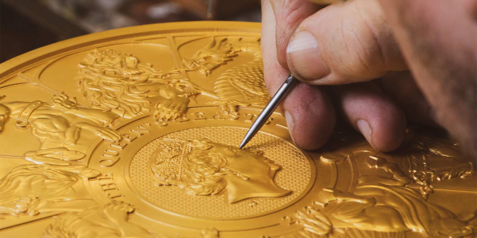 A uniquely titled ‘Master Toolmaker’ then hand works the coin, carefully papering and burnishing the surface of the metal to remove any marks made by the cutting process to elevate the finish of the design, before undergoing four days of polishing. Finally, the 200.00mm wide coin is laser frosted to selectively texture the surface of the coin giving it a matt finish showcasing the detailed finish of the coin’s design - completing 400 hours of work.