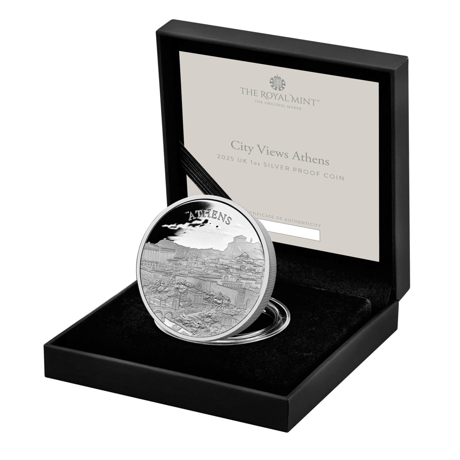 Struck in 999 fine silver, this coin is a valuable addition to any collection and marks the final release in our City Views collection. Each coin is presented in a luxurious display case, complete with a booklet detailing the cultural and historical relationship between the United Kingdom and Greece.