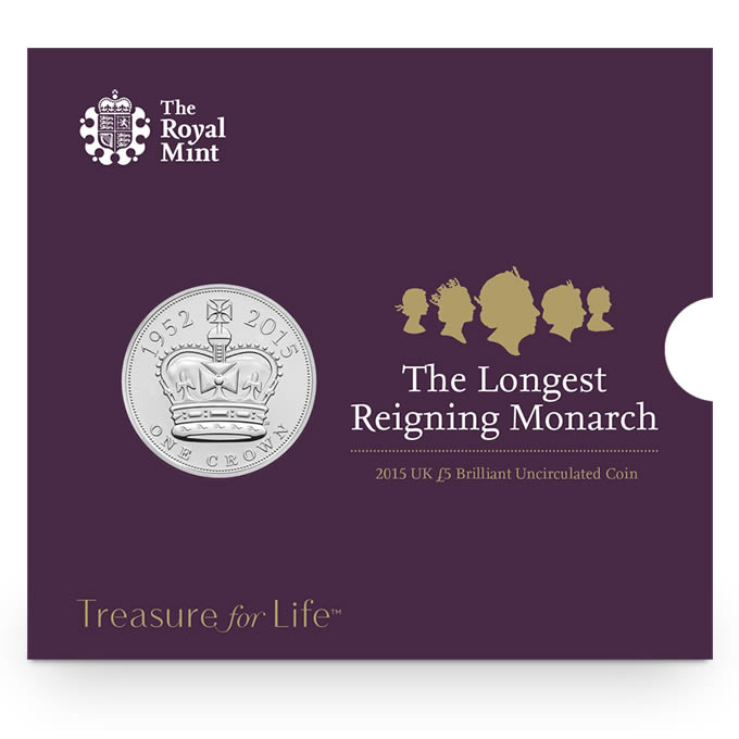 On 9 September 2015, a royal milestone was reached as, after 63 wonderful years of sovereignty, Her Majesty The Queen became the United Kingdom’s longest reigning monarch. What a reign it has been, characterised by unparalleled cultural change and with personal highs and lows that we, as a nation, have shared. The Queen, ever-respectful towards her predecessors, has acknowledged the occasion quietly and we have marked the moment with a specially created £5 coin.