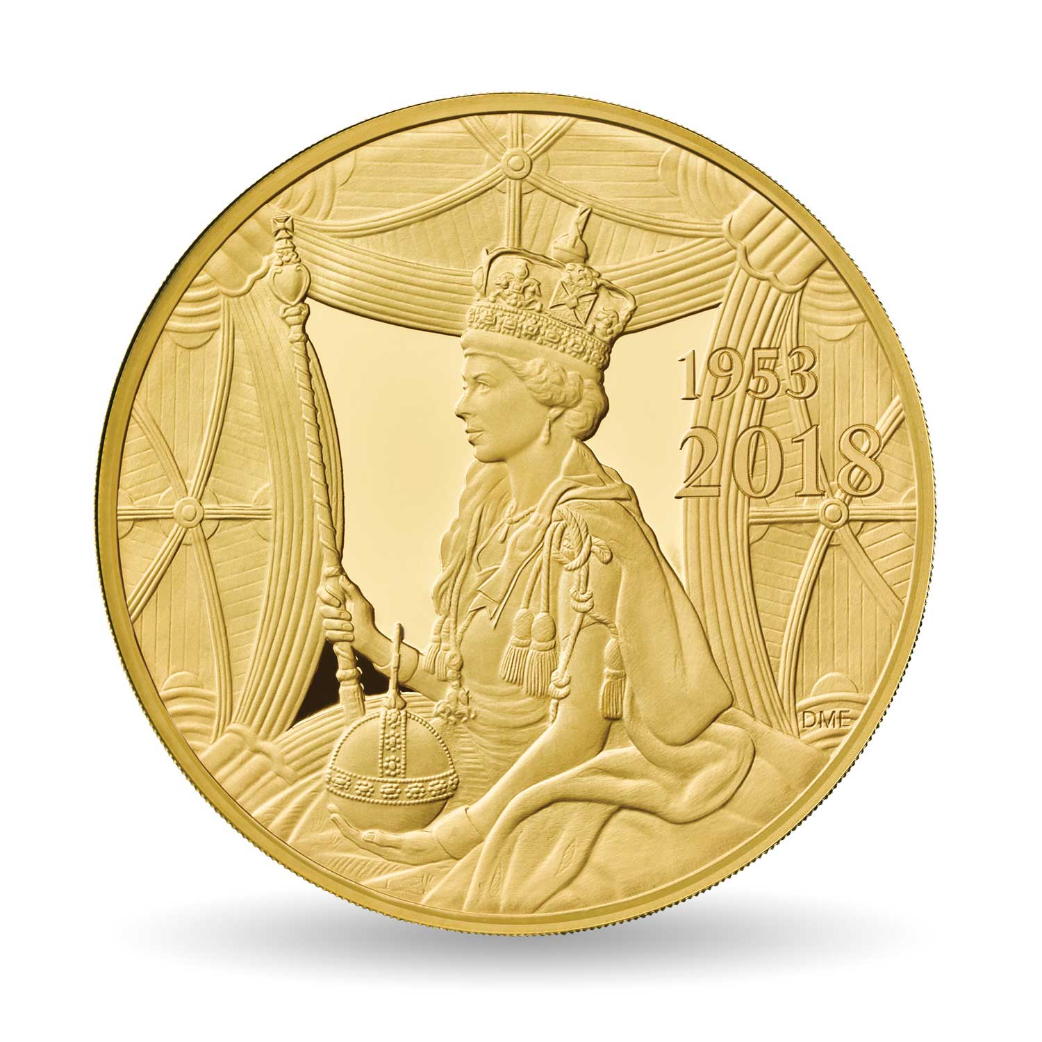 Today, the once private princess has become the world’s most recognised great-grandmother as we celebrate the longest reign in British history with the UK’s most awe-inspiring coin. The largest coin in the range, struck in one kilo of 999 fine gold, it forms a 100mm showcase for a new design that has The Queen at its heart. Royal Mint graphic designer Dominique Evans has depicted the then new monarch seated under the vaulted ceiling of Westminster Abbey, crowned and holding the symbolic orb and sceptre, every detail of the iconic design emphasised by the coin’s Proof finish, the finest minting finish for commemorative coins.