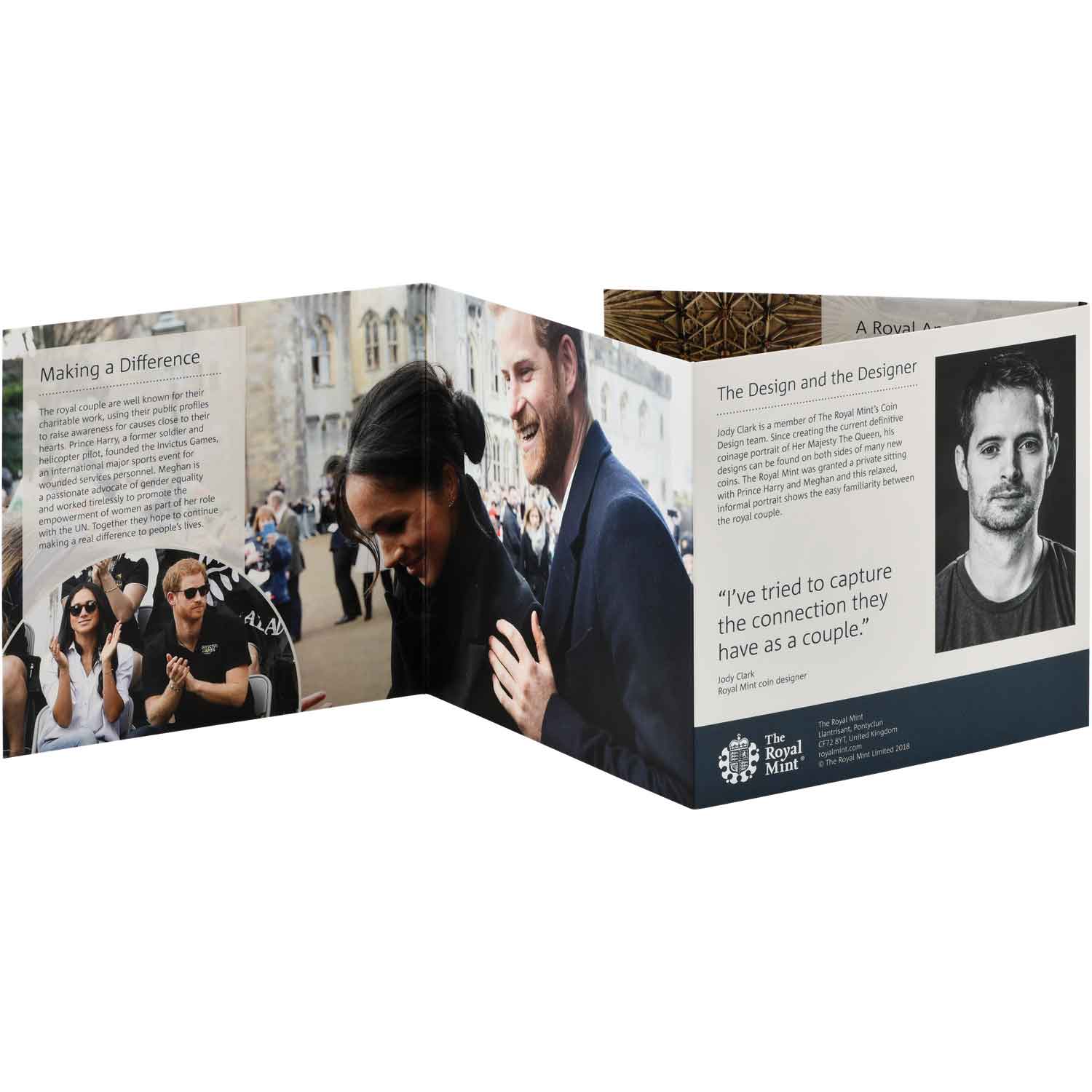 Struck to Brilliant Uncirculated standard, superior to the change in your pocket, the coin features an original portrait created especially for the occasion. Royal Mint coin designer Jody Clark eschews convention for something warmer and more contemporary. Relaxed and informal, his portrait was developed from a sitting with the royal couple at Kensington Palace. Approved by Her Majesty The Queen, it’s the only official UK coin to mark this historic occasion.