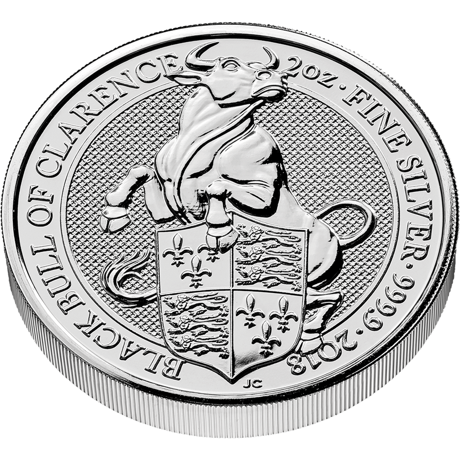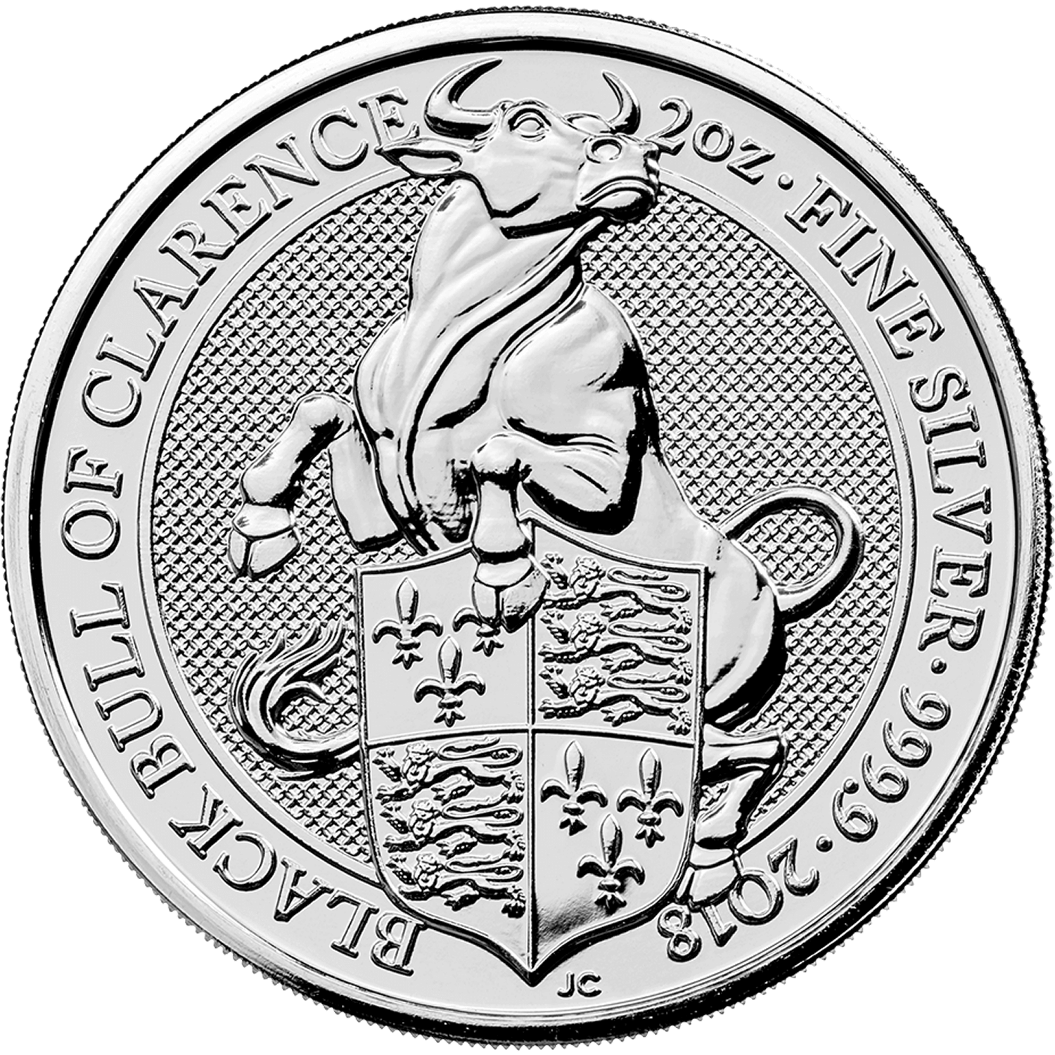 Following the success of the Lion of England, the Griffin of Edward III, the Dragon of Wales and the Unicorn of Scotland, The Black Bull of Clarence Two Ounce Fine Silver Bullion Coin, features an original design by acclaimed coin designer Jody Clark.