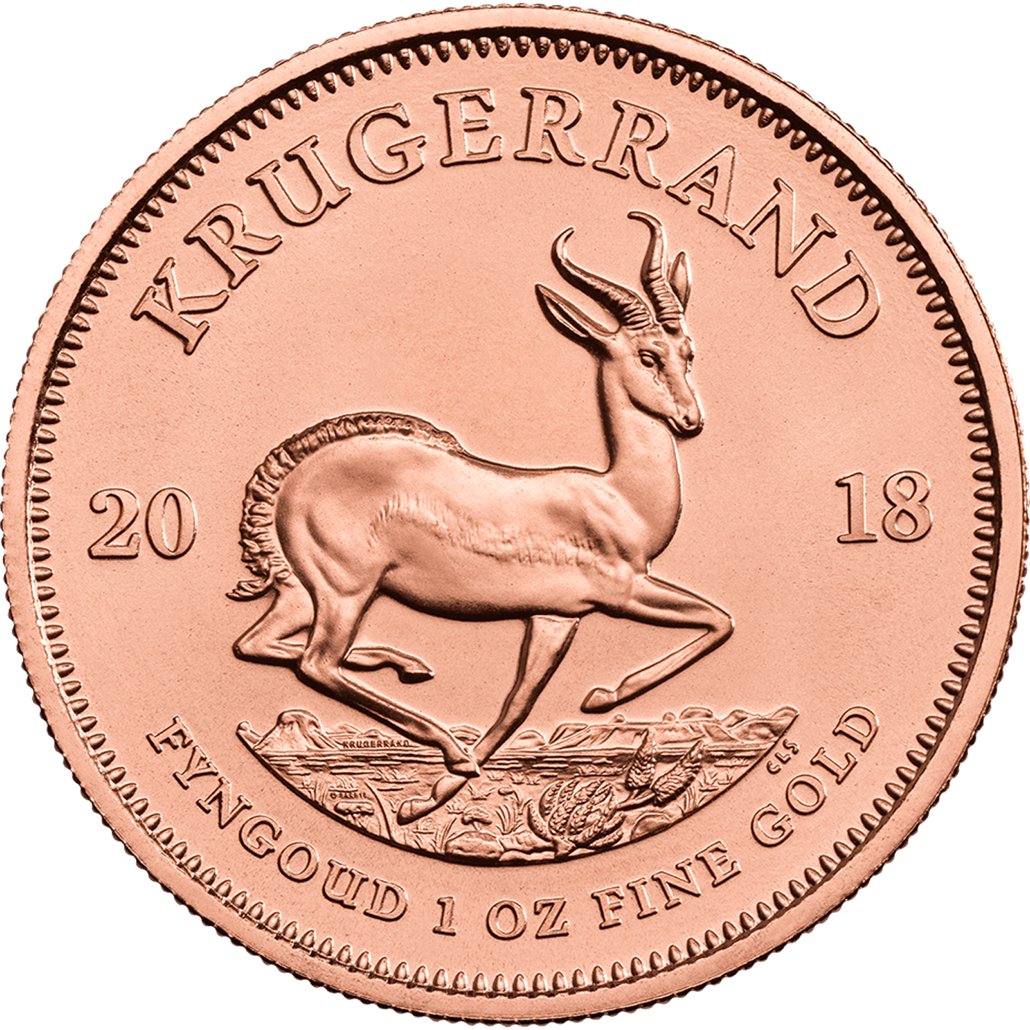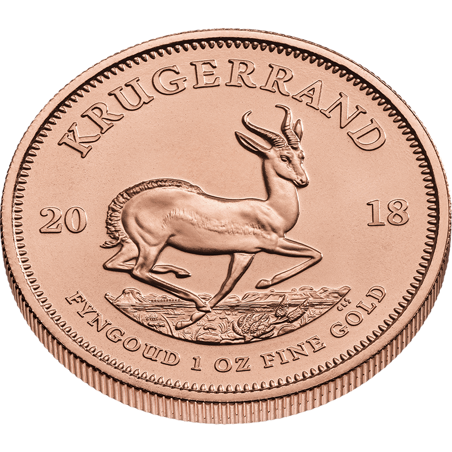 The gold Krugerrand coin has been minted since 1967 by The Rand Refinery in South Africa. The Krugerrand is one of the most popular and numerous one-ounce bullion gold coins in the world. The name itself is a compound of Kruger (the former South-African president depicted on the obverse) and rand, the South African unit of currency. Much like The Sovereign, Krugerrand coins are 916.7 fineness and are 22 carat gold.