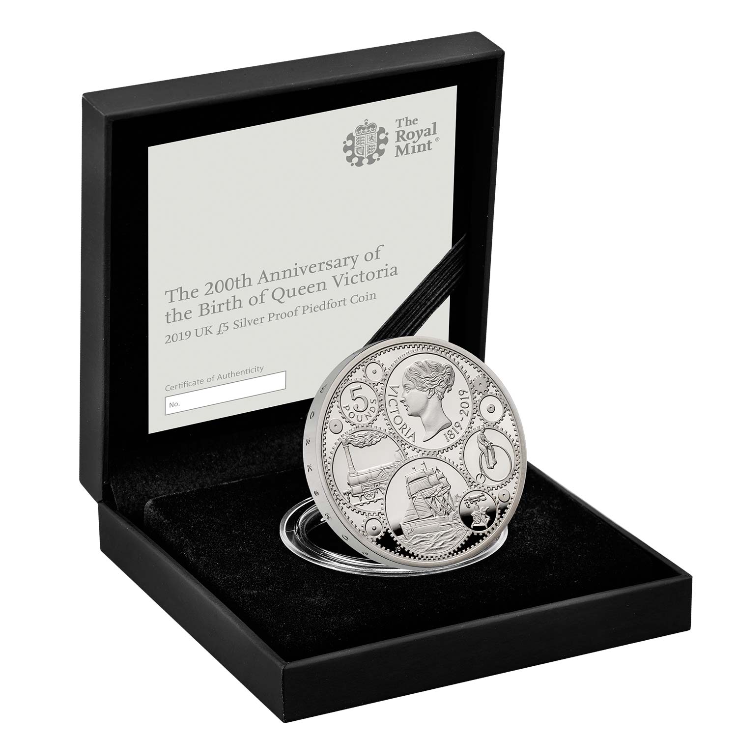 Double the weight of the £5 silver Proof coin, this piedfort edition brings an inherent sense of occasion to this celebration of one of the United Kingdom's best-known monarchs: Queen Victoria. In 2019, the world observes 200 years since Queen Victoria's birth and The Royal Mint is celebrating with the release of two coin designs, including this £5 coin. Bearing the edge inscription ‘WORKSHOP OF THE WORLD’, the coin feels alive with the hum of industrial activity thanks to its engaging cog motif.