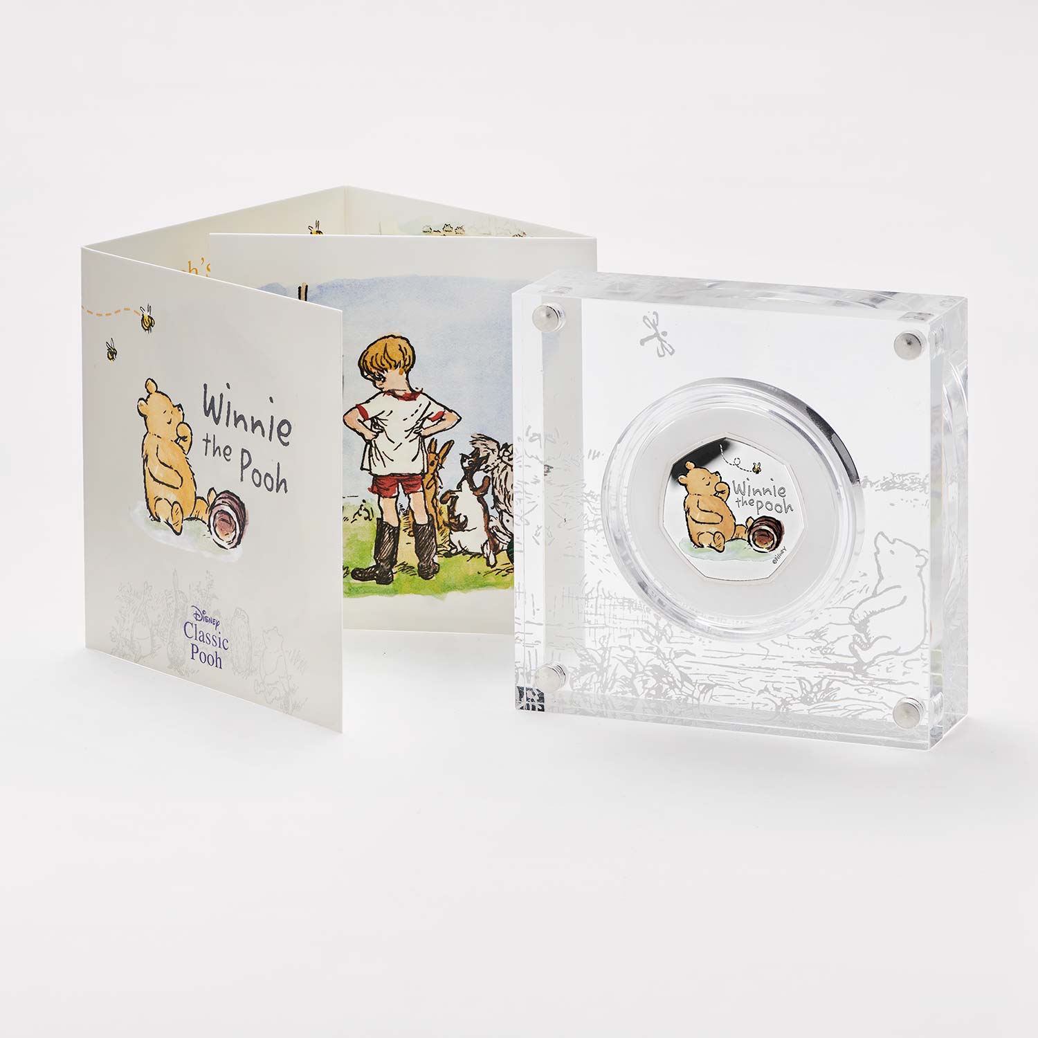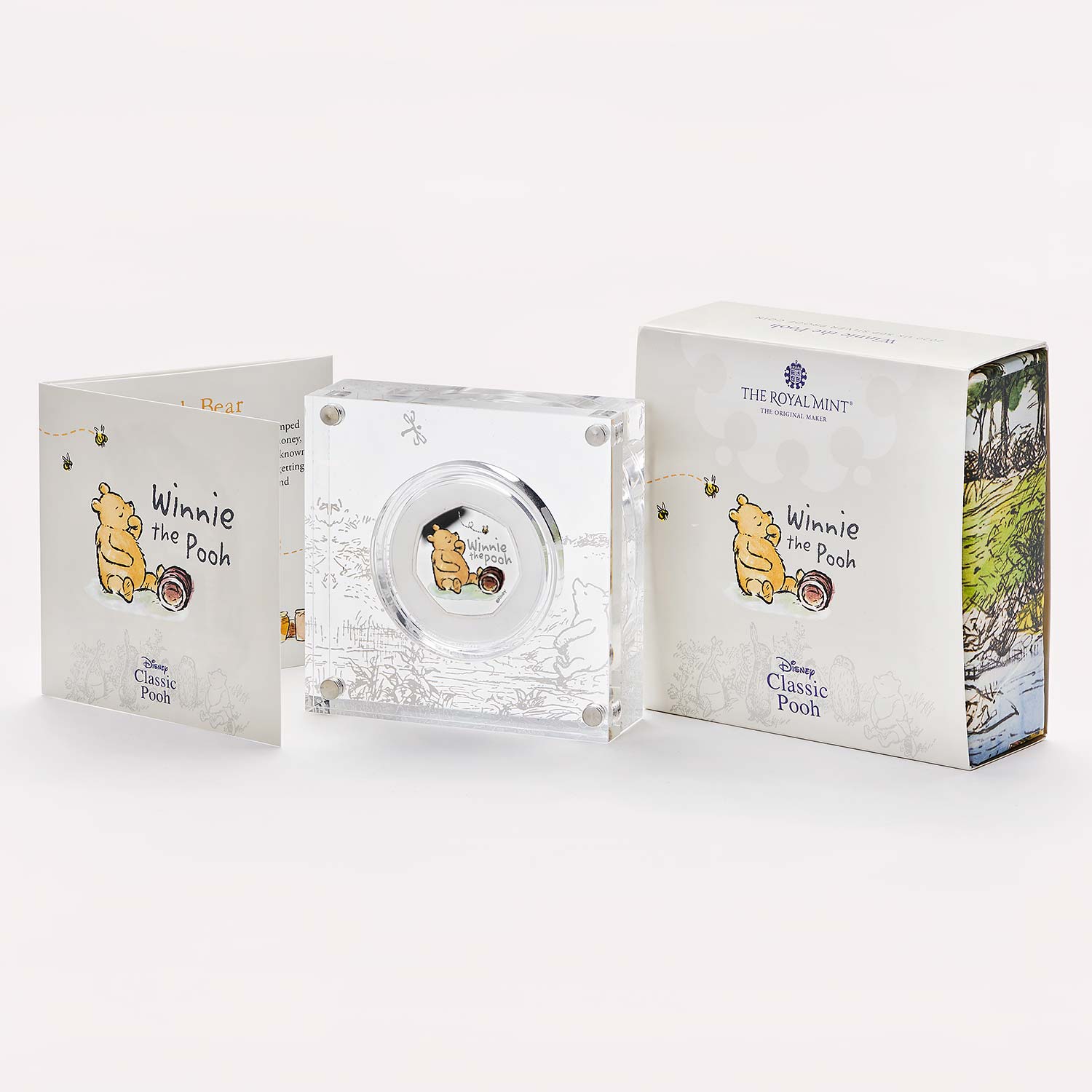 This is the first time Winnie the Pooh has featured on a coin struck by The Royal Mint and this official UK coin has been approved by Buckingham Palace. Just 18,000 925 sterling silver coins are available in this presentation and each comes in a beautifully decorated acrylic block with a booklet all about the ‘silly old bear’.