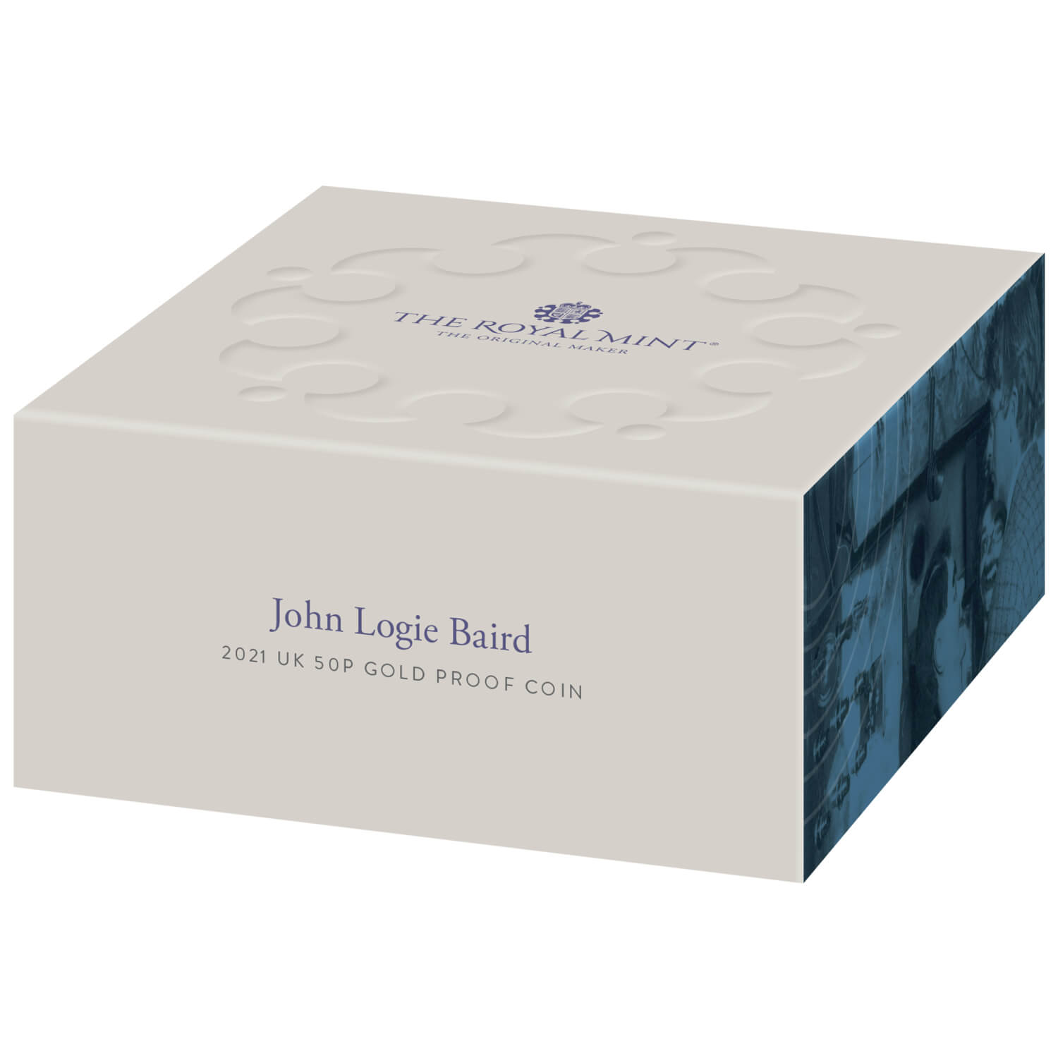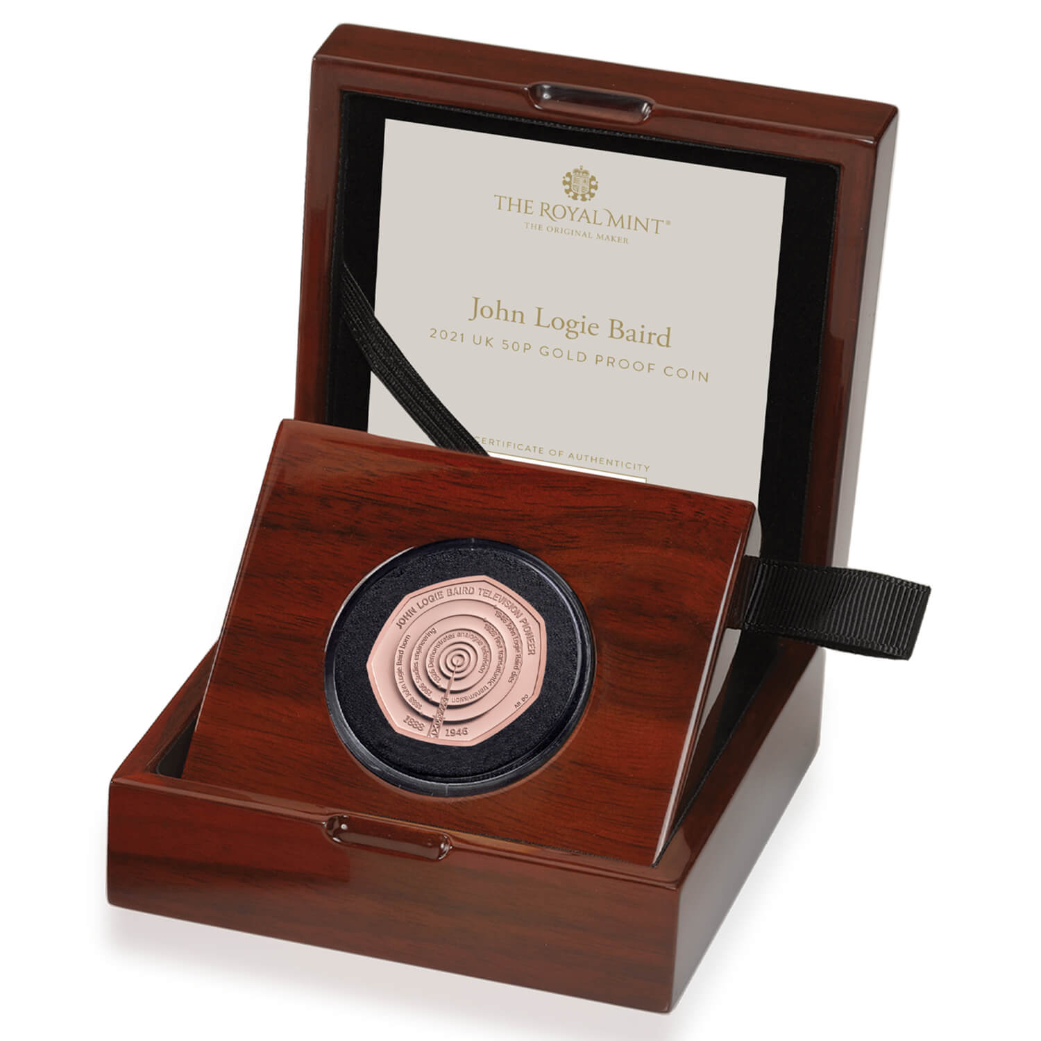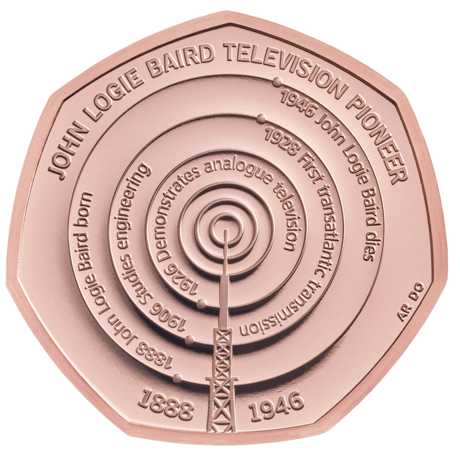The John Logie Baird 50p coin is the latest addition to our collection of coins celebrating ‘Great Britons’. It is presented in packaging created collaboratively with the Baird family, which includes an annotated diagram of Baird’s original ‘Televisor’ invention.
