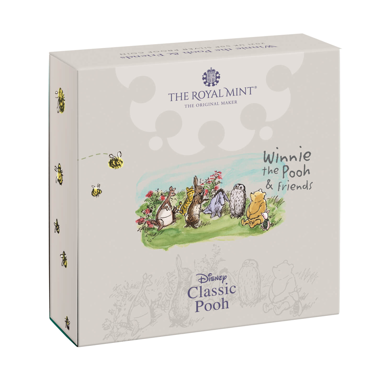 The first coin in the series for 2021 celebrates the 95th anniversary of the first publication of Winnie-the-Pooh, with the inhabitants of the Hundred Acre Wood pictured together for the festivities. The coin is inspired by the classic stories of A. A. Milne, whilst colour printing brilliantly captures E. H. Shepard’s charming illustration style and watercolour effect. A friendly bee connects all the coins in the collection, buzzing from one scene to the next.