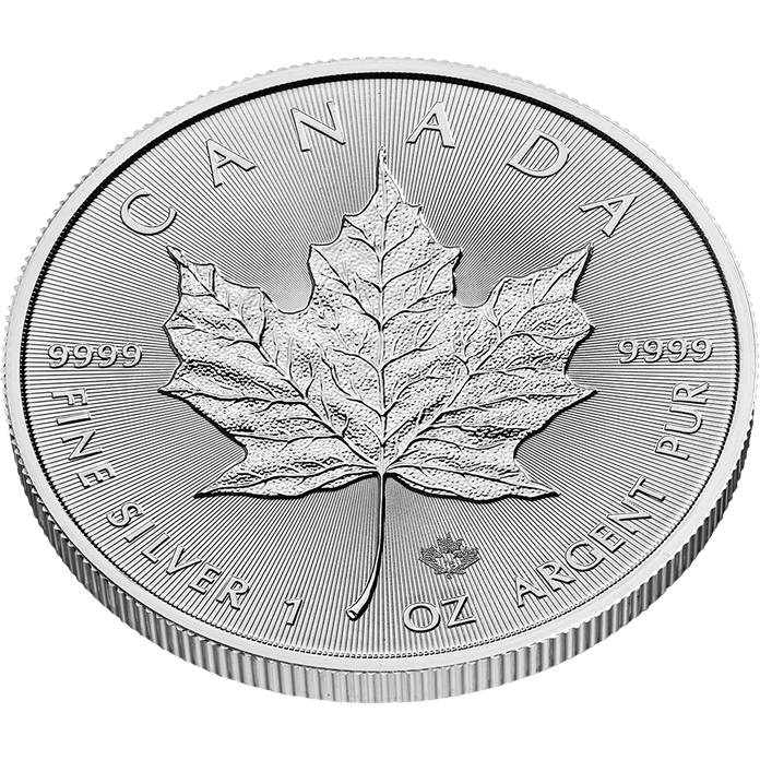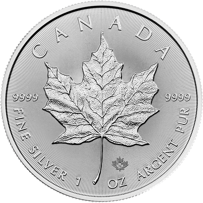 The Canadian Maple Leaf one-ounce silver bullion coin is minted by the Royal Canadian Mint and was first introduced in 1979. This coin features the iconic maple leaf, a symbol which is often used to represent Canada and is synonymous with Canadian identity.