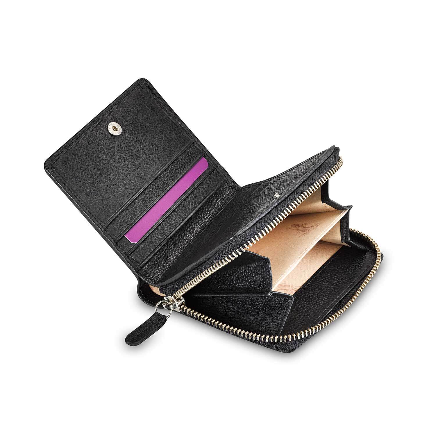 Made from specially selected Pebble Grain leather for its ability to age beautifully over time. This purse has front compartment for notes and cards secured with a discrete press stud. The zip around compartment at the back is perfect for coins. This is a handy little purse that will fit virtually any handbag or pocket.