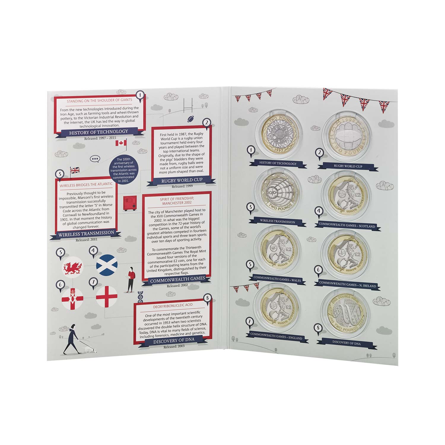 This collector album is designed to store £2 coins which celebrate a variety of themes, from scientific achievements that changed the world to brilliant moments in sport and advancements in communication which paved the way for modern technology.