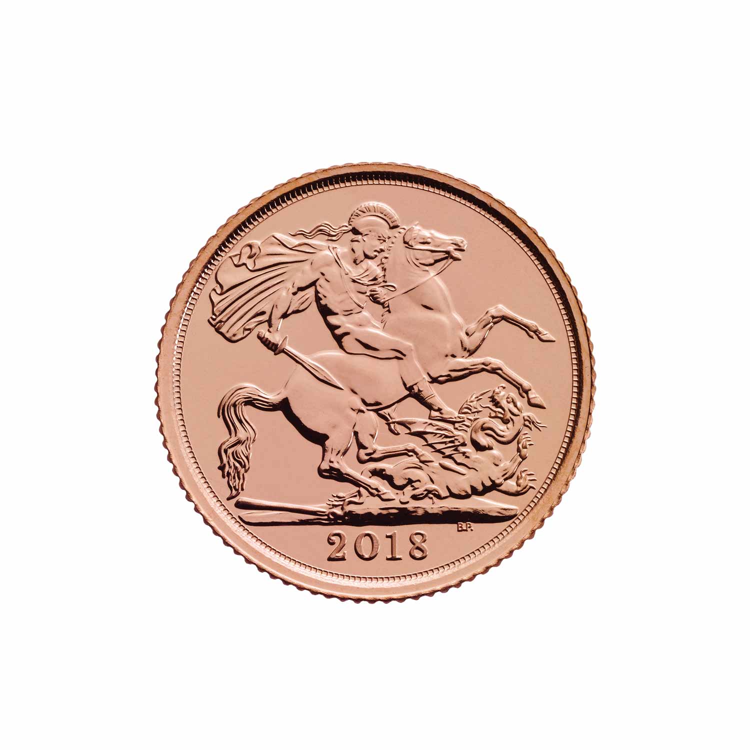 In keeping with tradition, The Half-Sovereign 2018 features Benedetto Pistrucci’s depiction of St George and the dragon, a design that has come to define The Sovereign. First struck for the Sovereigns of George III in 1817, this iconic image has endured for more than 200 years. The Sovereign 2018 range also includes a gold Sovereign bullion coin.