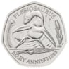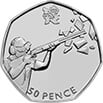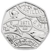1969-1982 | Britannia A figure of Britannia, seated beside a lion, with a shield resting against her right side, holding a trident in her right hand and an olive branch in her left hand, with the figure 50 below and the inscription NEW PENCE above. Designed by: Christopher Ironside |