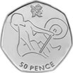 The design on the reverse of the 50p coin features a symbol of Britannia that has appeared on our coinage since 1672. While this design may have been traditional, the shape of the new 50p coin, an equilateral curve heptagon, was revolutionary. This made it easily distinguishable from round coins both by feel and by sight, while its constant breadth allowed it to roll into vending machines.Introduction of a Smaller 50p Coin