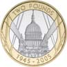 The 60th Anniversary of the End of the Second World War St Paul's Cathedral illuminated by searchlights, and the value TWO POUNDS above and the dates 1945-2005 below. Designed by: Bob Elderton |