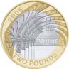 The 200th Anniversary of the Birth of Isambard Kingdom Brunel A portrait of Isambard Kingdom Brunel, with two of his engineering achievements, encircled by a chain, with the denomination TWO POUNDS above and the date 2006 below. Designed by: Rod Kelly |