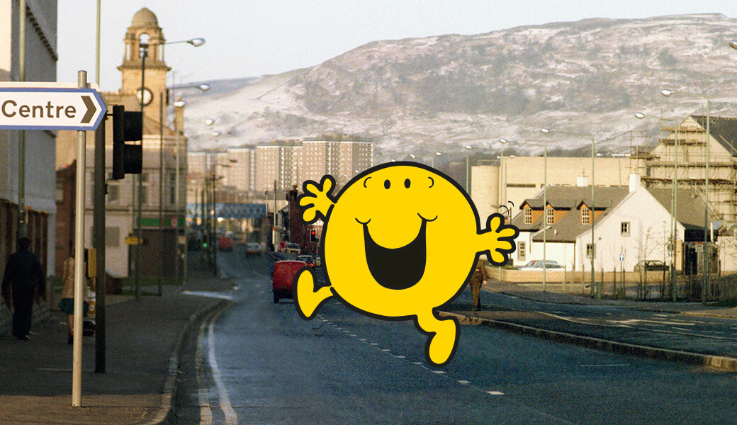 The city of Glasgow turns to the Mr. Men character Mr. Happy to assist in its ‘Glasgow’s Miles Better’ campaign. -