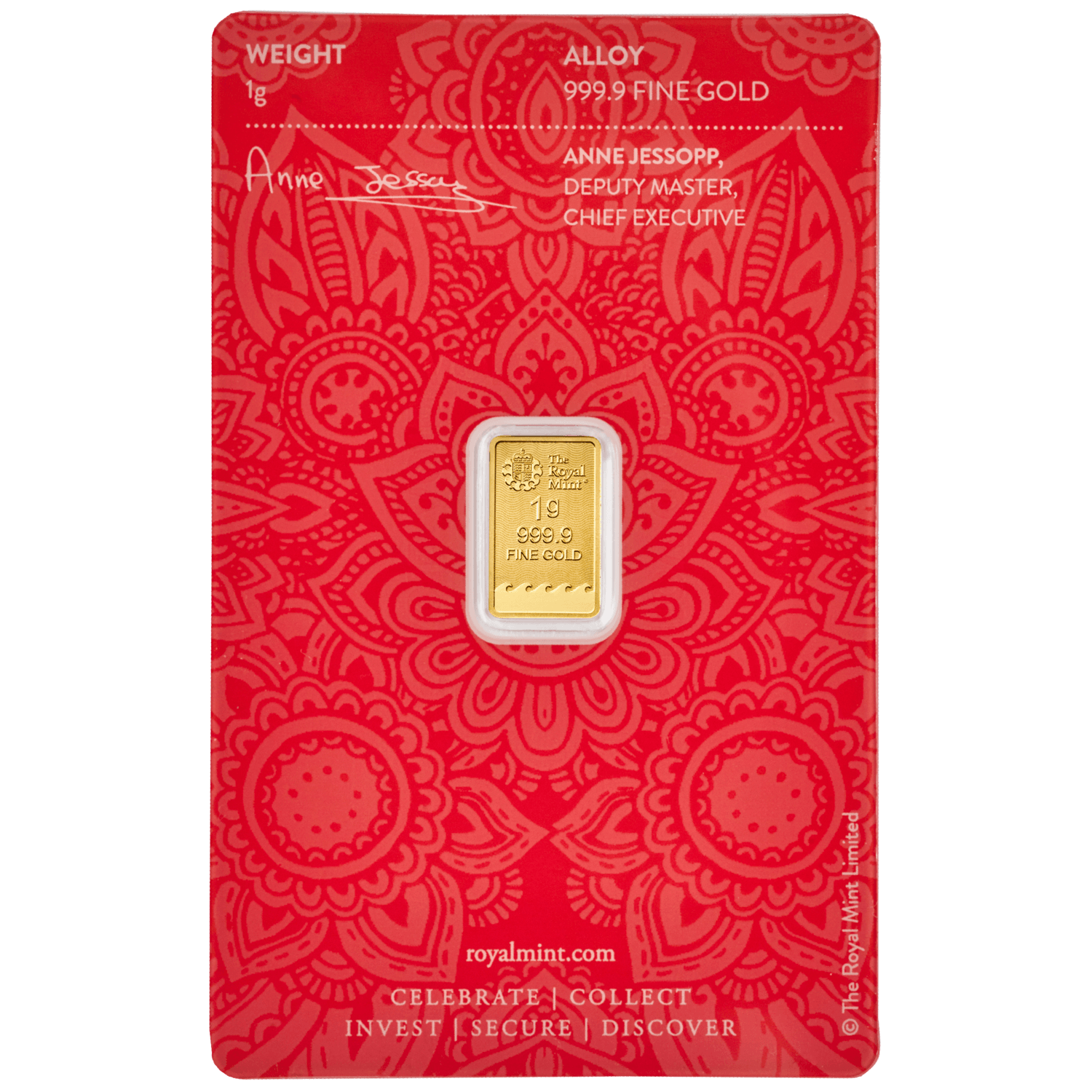 This is the first time Britannia bullion is available as a 1g gold bar. Each bar is also imprinted with a unique serial number and presented in colourful celebratory henna styled packaging, ready to gift.