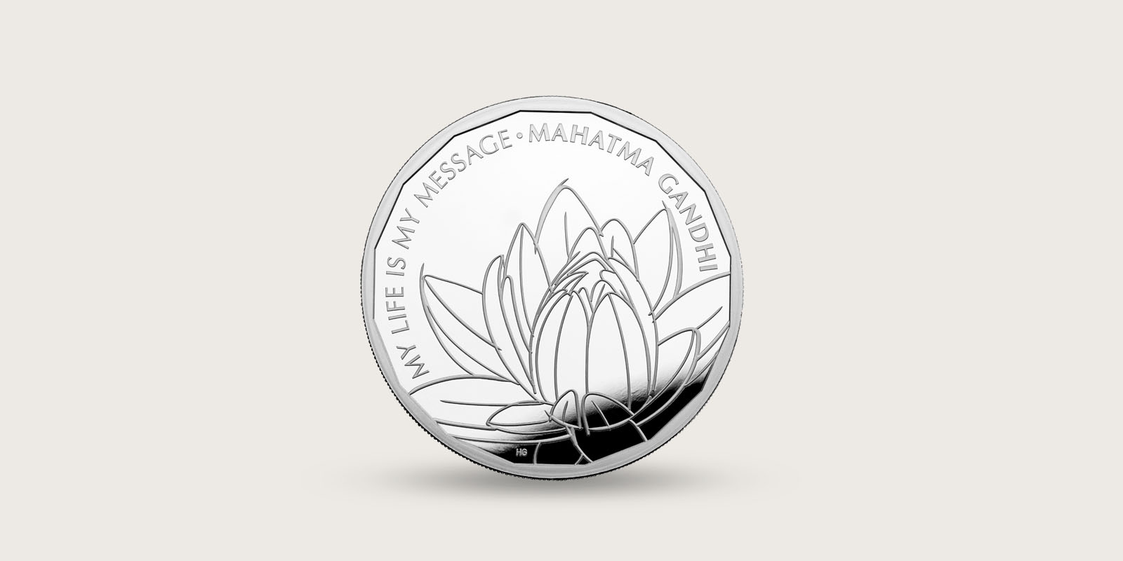 The reverse of each Gandhi coin features an image of a lotus, the national flower of India, which symbolises Gandhi’s gentle strength.
