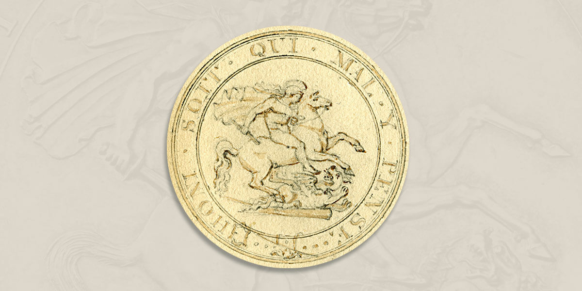 Pistrucci was quickly commissioned to provide portrait models of George III for the new gold and silver coins planned for issue in 1817. At first, he was unable to engrave these models directly into steel, a task entrusted to The Royal Mint’s own engravers. However, Pistrucci was unhappy with the result and mastered the technique for himself, so that when he produced his classic St George and the dragon for the new Sovereigns of 1817, the design was entirely his own. Still used extensively today, this motif has enjoyed remarkable longevity and ensured the survival of Pistrucci’s name and reputation. It is perhaps appreciated more now than in 1817, although when its use was extended in 1818 to the new crown, it produced a coin that Dominique Vivant Denon, a shrewd contemporary judge, French artist and museum official, described as ‘the handsomest coin in Europe’.