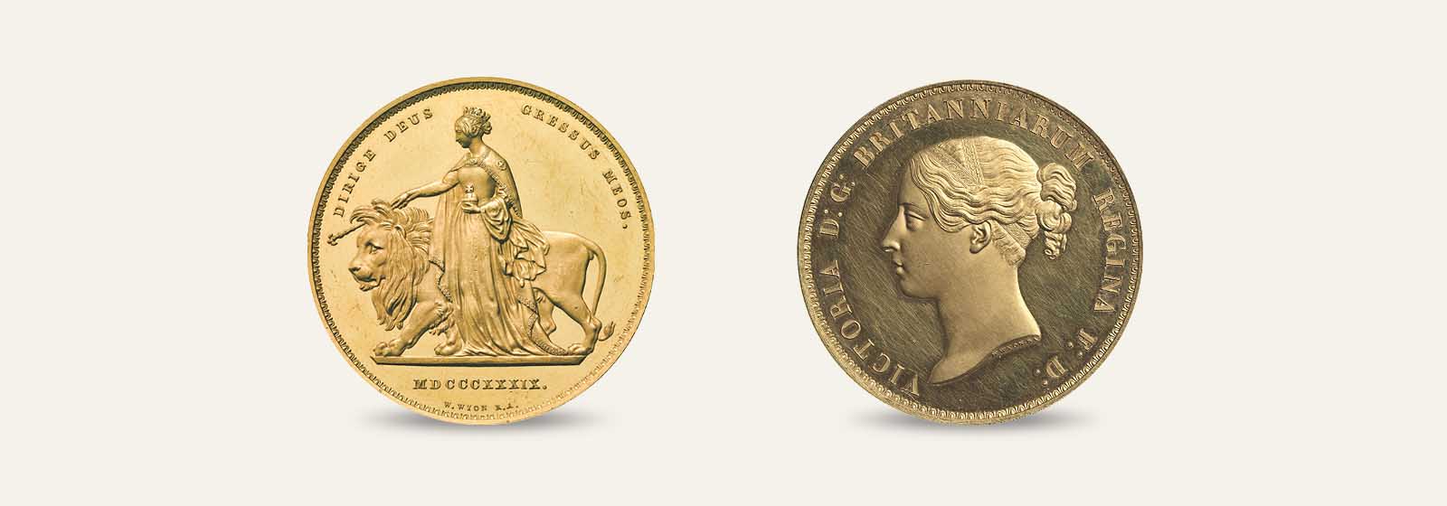 In its original form – a gold Five-Sovereign piece – Una and the Lion was designed to commemorate the start of Queen Victoria’s reign. But this was no ordinary coin struck for circulation. Instead it seems likely it was intended for collector sets dated 1839, which were delayed until 1843. Estimates suggest that between 300 and 500 were produced.