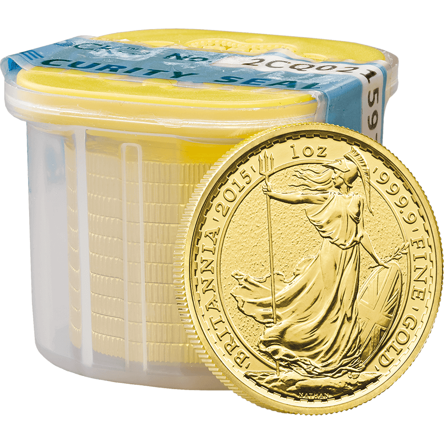 The 2015 Britannia 10 coin tube comprises of 10, 1 oz coins each struck in 999.9 fine gold (24 carat). The Britannia is one of the world’s oldest coin icons and this classic design is instantly recognised across the world as a timeless image of grace and protection. These coins are VAT free and Capital Gains Tax exempt.