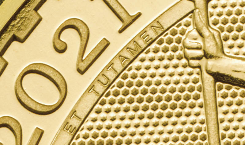 The 2021 Britannia Gold Bullion One Ounce Coin redefines security in the bullion market. Created by the team behind the United Kingdom’s 12-sided £1 coin (dubbed the ‘world’s most secure coin’), Britannia has evolved once more to spearhead the best security technology available and lead the way as the most visually secure coin in the world. Philip Nathan’s award-winning Britannia design from 1987 depicts an enduring symbol of a nation, boldly standing beside a shield that bears the Union flag, a symbol of Britain’s strength, and holding an olive branch representing peace. Philip Nathan’s Britannia is as beautiful as ever, struck in 999.9 fine gold and enhanced with four new features. In the lower left-hand of the design, below Britannia’s flowing gown, is a trident to represent her naval history. As the viewer changes their perspective this trident becomes a padlock, emphasizing the coin’s secure nature. Surface animation reflects the movement of waves, and fine details like the Union flag on Britannia’s shield have been carefully highlighted in the coin’s bullion finish. These added security features both decorate and protect the coin, just as the micro-text that borders the design states – ‘DECUS ET TUTAMEN’, which translates as ‘AN ORNAMENT AND A SAFEGUARD’.