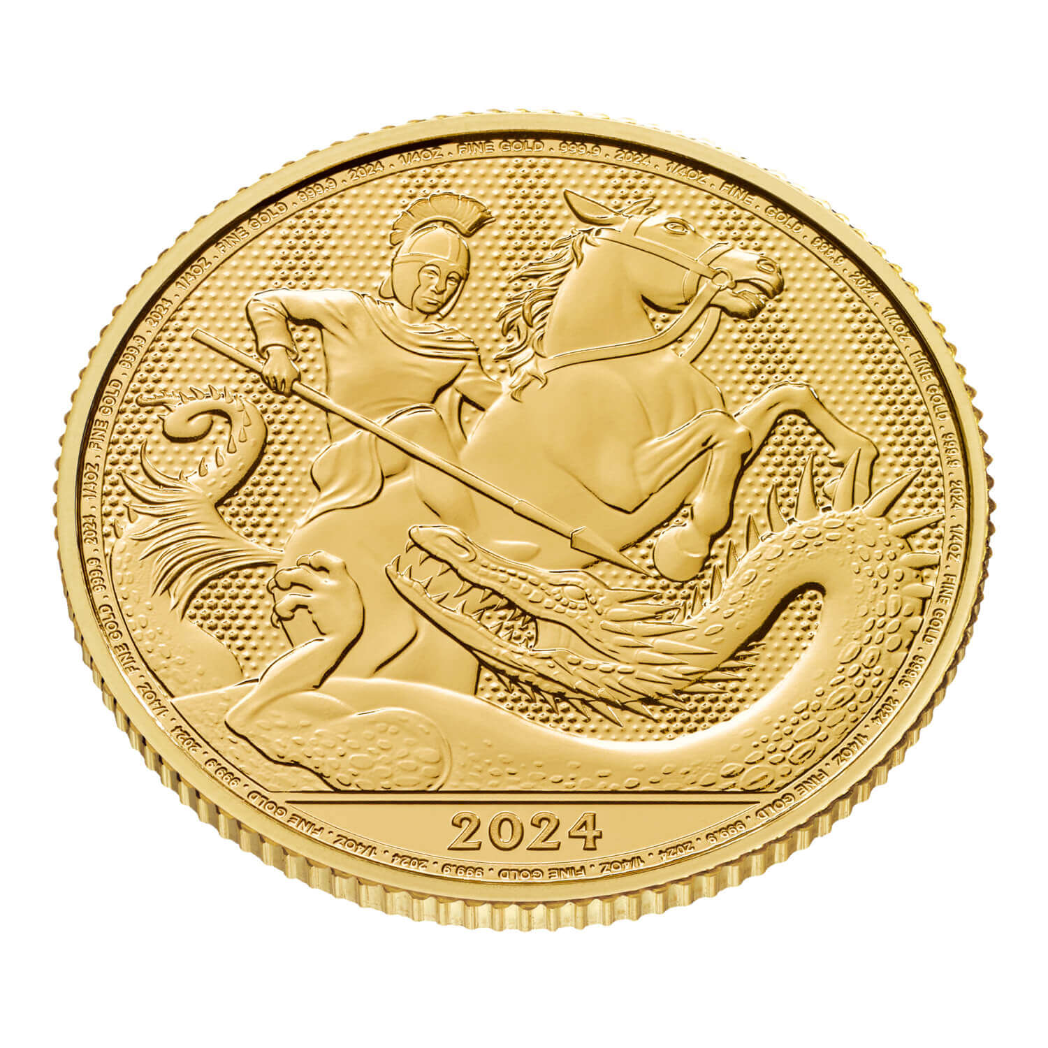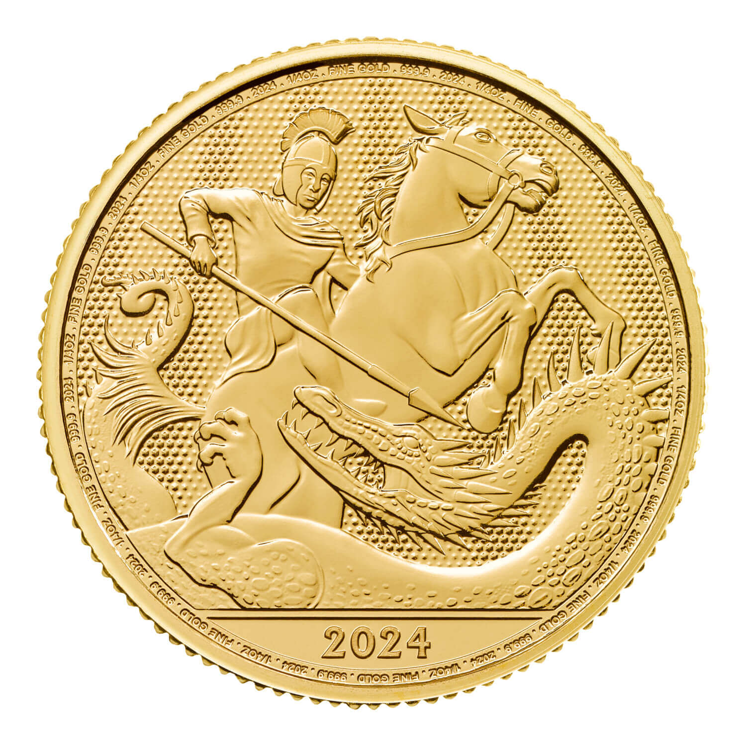 - Struck in one quarter ounce of 999.9 fine gold and finished to The Royal Mint’s bullion standard