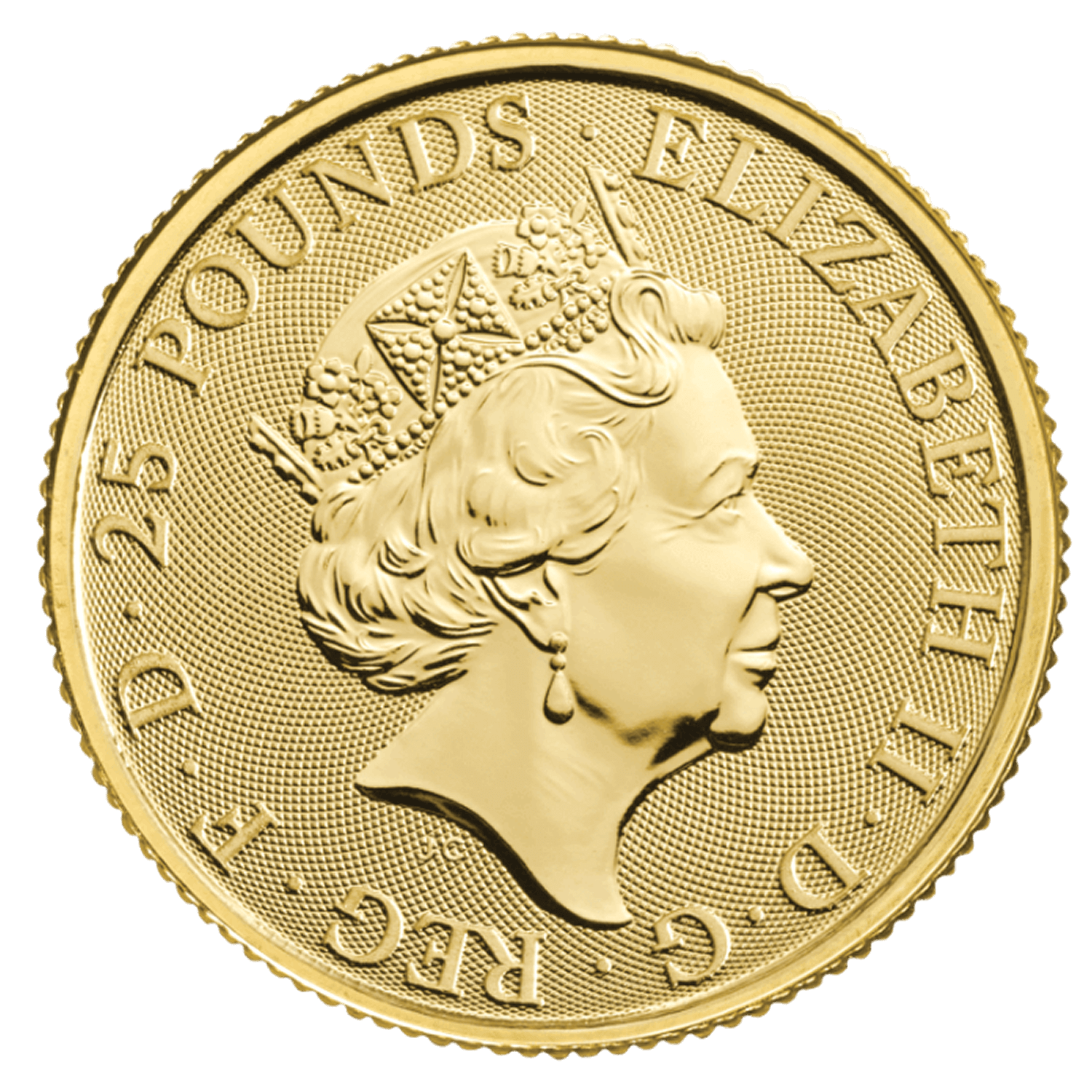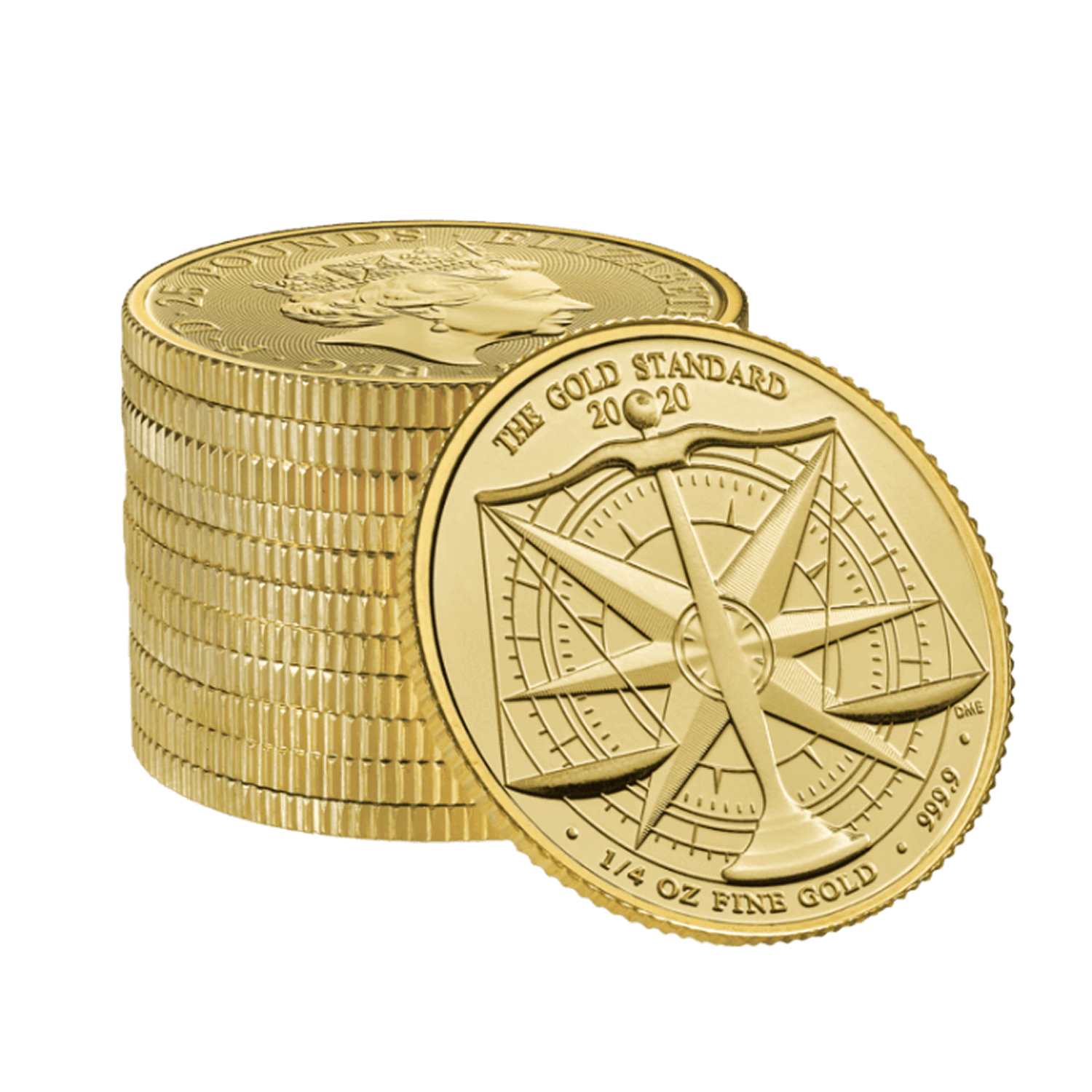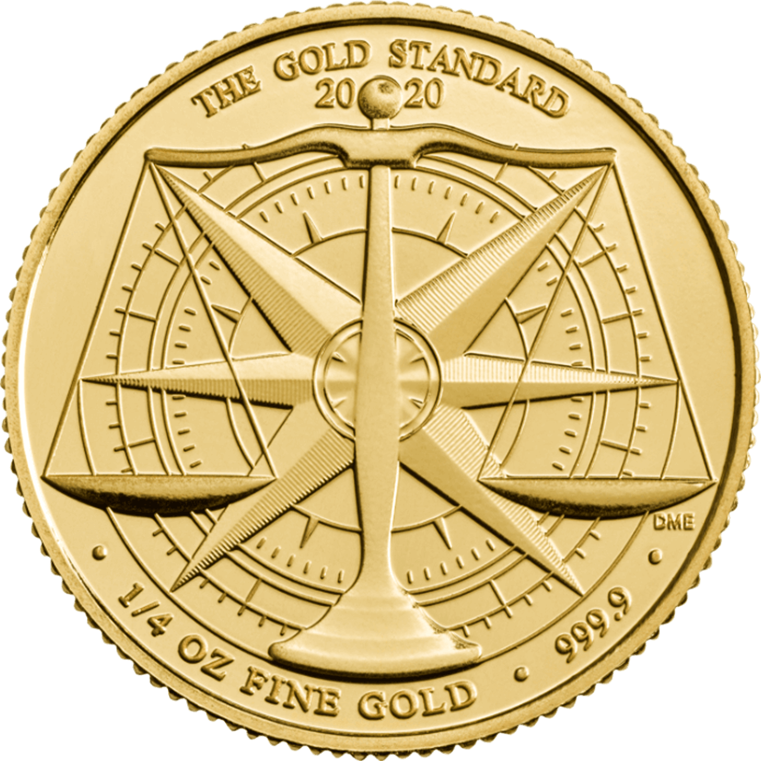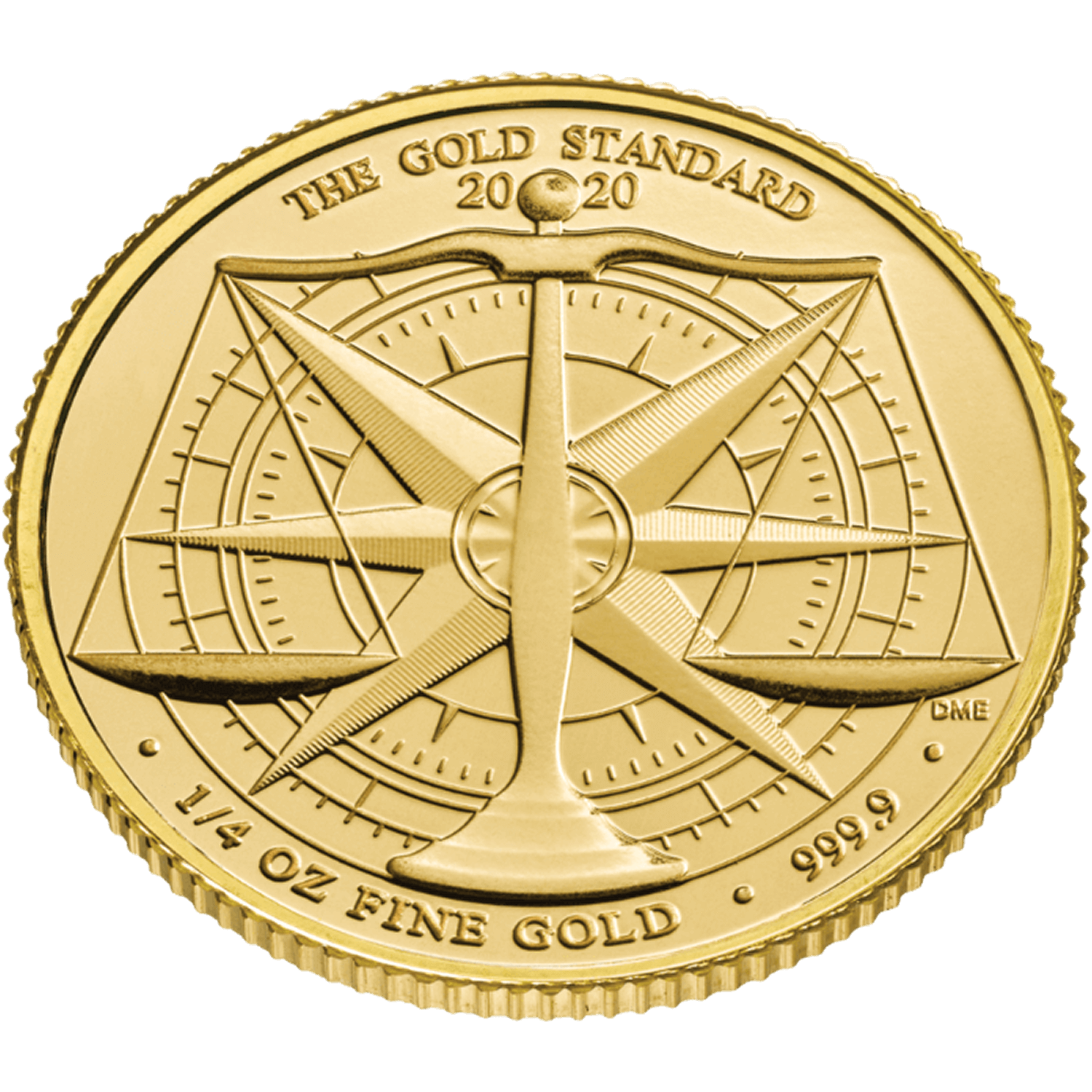 Designed in 2016 to mark 200 years since the de facto introduction of the gold standard – tying the value of the British pound to that of gold – the Gold Standard 2020 coin is an exclusive offering from Royal Mint Bullion. Featuring the work of Royal Mint graphic designer Dominique Evans on its reverse, and Jody Clark's official portrait of Her Majesty The Queen on the obverse, the Gold Standard coin is offered as a quarter-ounce bullion coin struck in 999.9 fine gold.