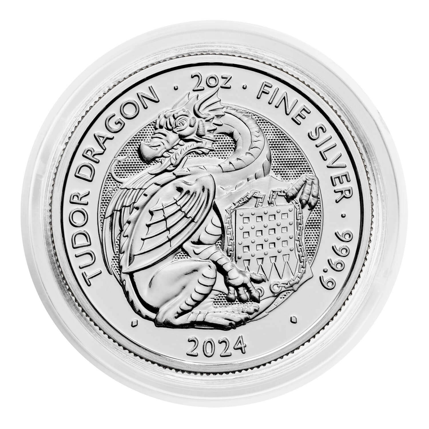 For the Tudor Dragon 2024 bullion coin, a dynamic reverse design created by David Lawrence is set against a background that resembles chain mail and includes surface animation, which provides the coin with an additional security feature.