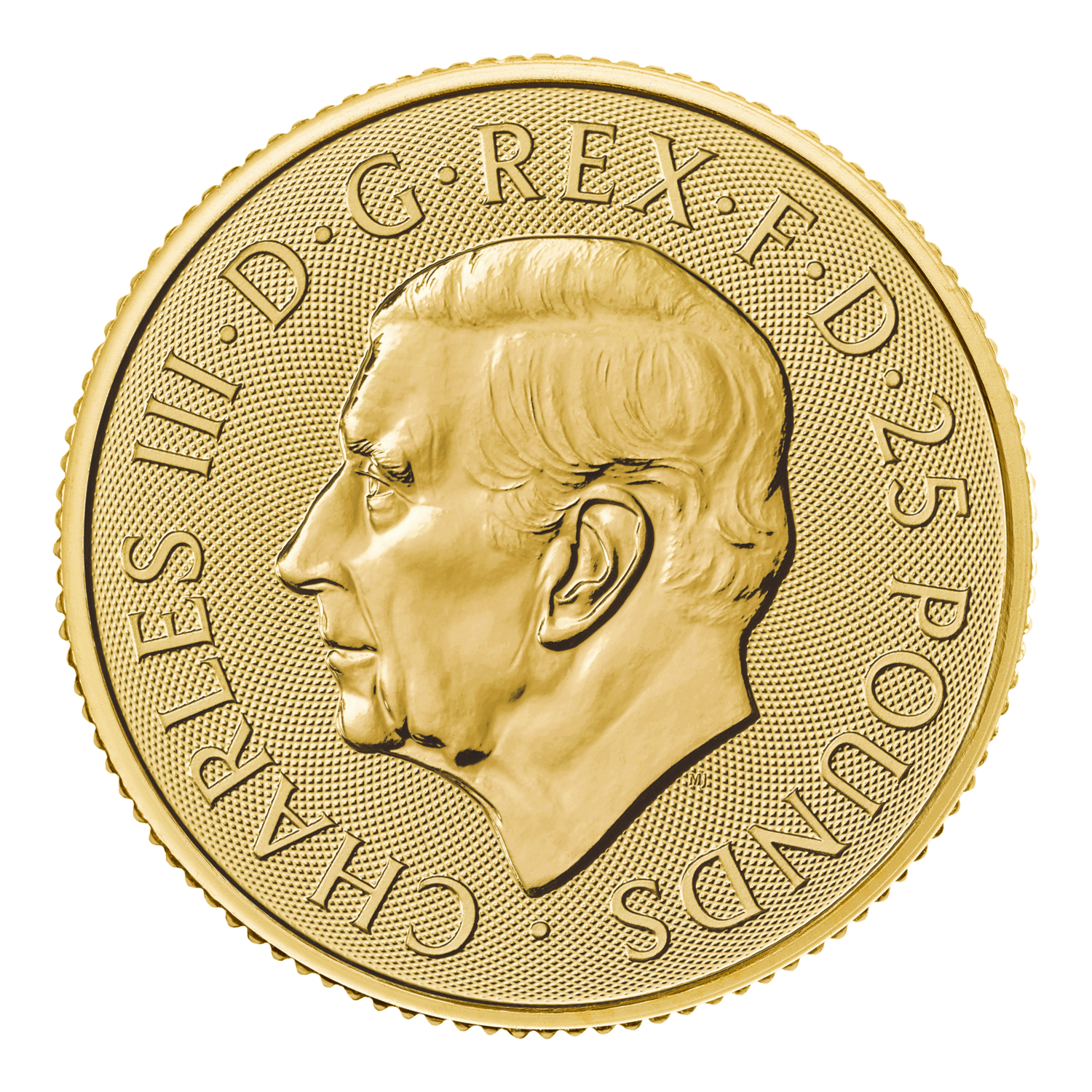 David Lawrence has captured the mythical Bull on the reverse of the coin, with a chain mail surface animation background texture providing additional security. It is the first coin in the series to feature the official coinage portrait of King Charles III by Martin Jennings.