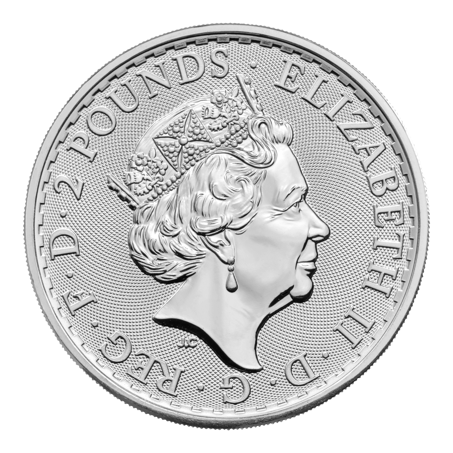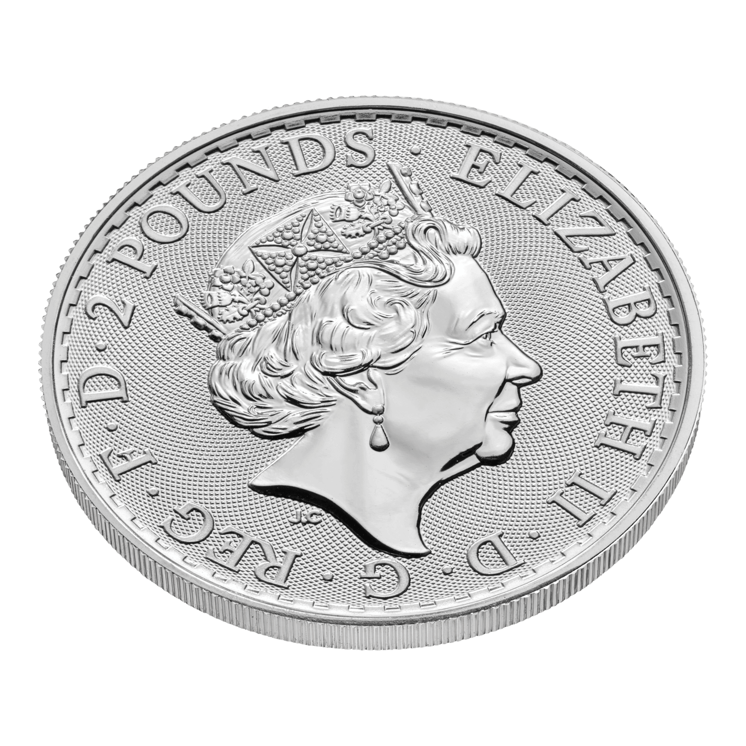 In the lower left-hand of the design, below Britannia’s flowing gown, is a trident to represent her naval history. As the viewer changes their perspective this trident becomes a padlock, emphasising the coin’s secure nature. Surface animation behind Britannia reflects the movement of waves and fine details such as the Union flag on Britannia’s shield have been highlighted by tincture lines.