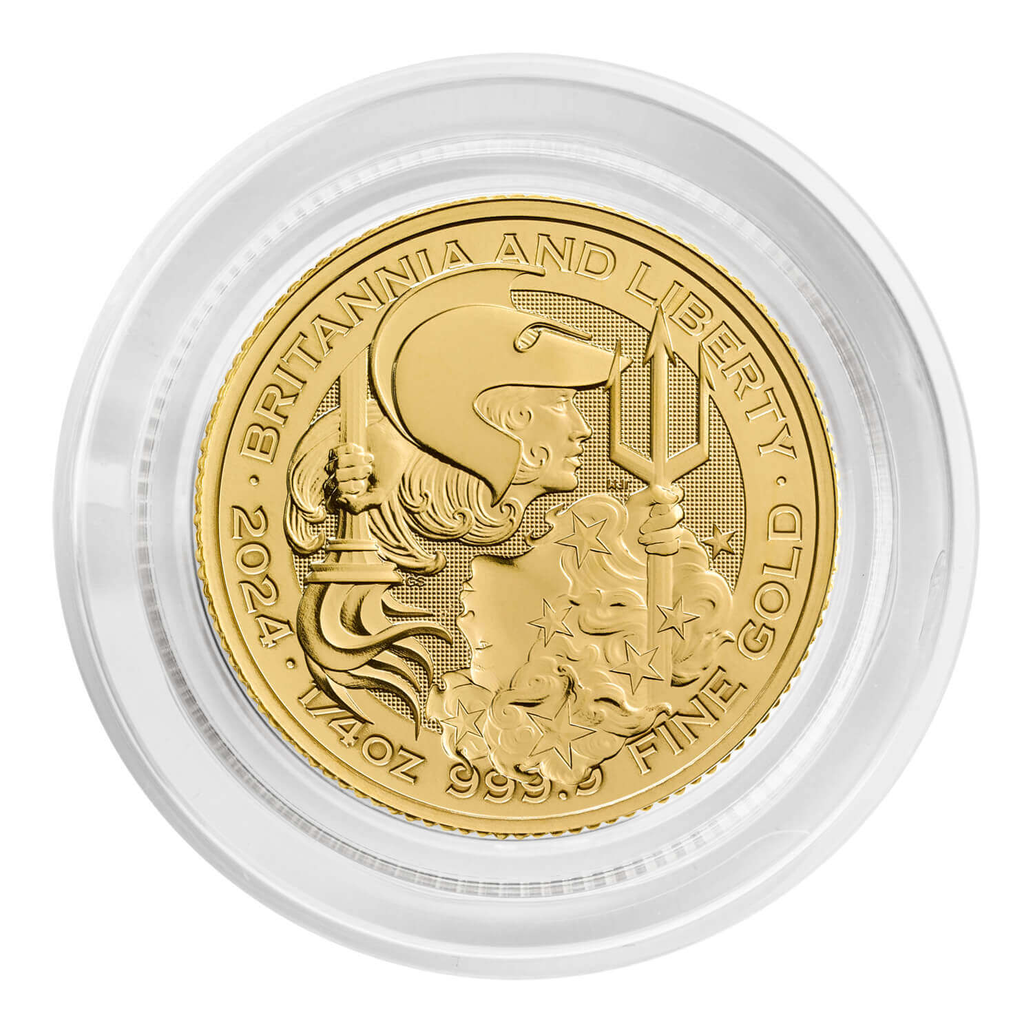 The Britannia and Liberty bullion coin is also available struck in one ounce of gold and a quarter of an ounce of gold.