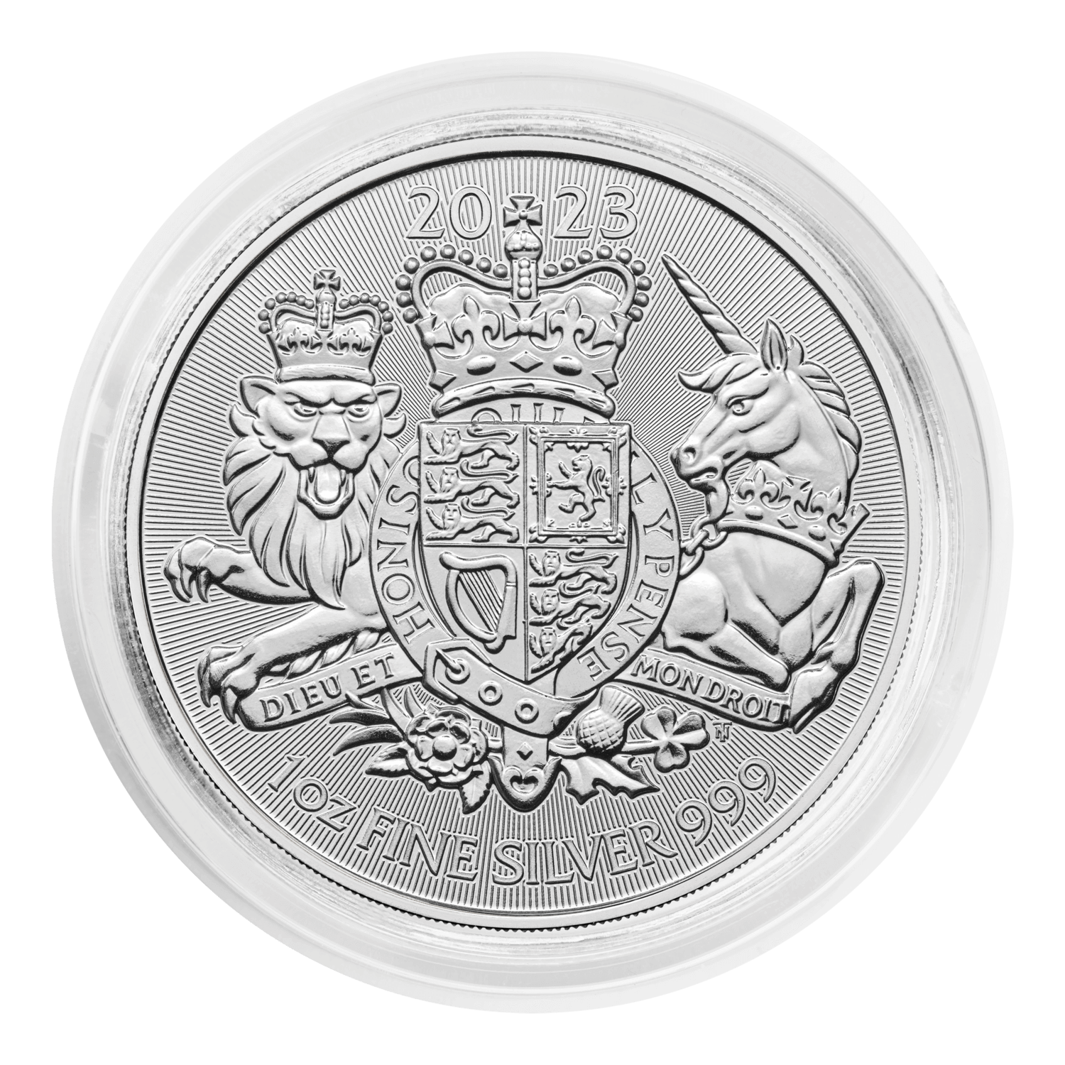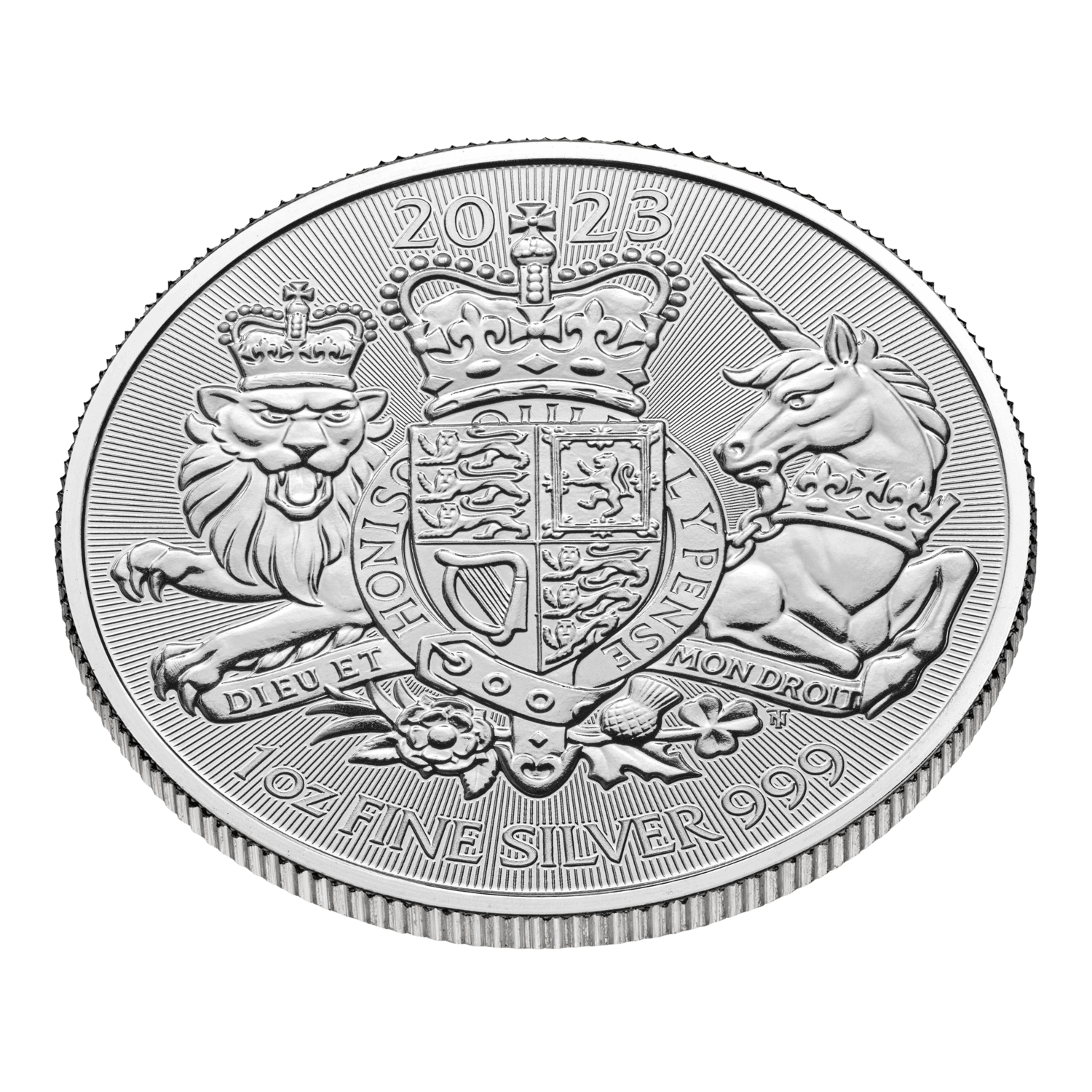 Timothy Noad’s skilful reinterpretation of The Royal Arms returns for the fifth year running to adorn a 2023 bullion coin range. For centuries, the symbol has been used to signify royalty and strength, featuring on shields during battle and serving as a seal of authority on official British documents. Representing His Majesty The King, the Arms also symbolise each nation of the United Kingdom, with a leek for Wales, a thistle for Scotland, a shamrock for Ireland and a Tudor rose for England.