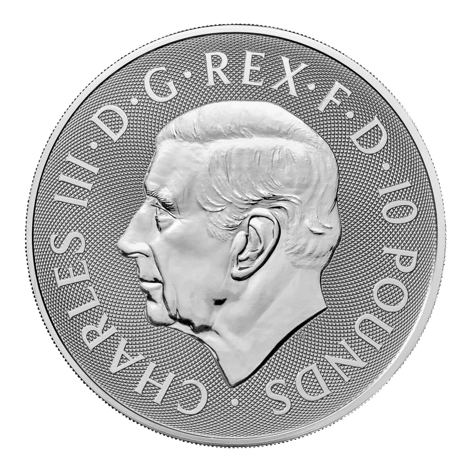 David Lawrence has captured the mythical unicorn on the reverse of the coin, with a chain mail surface animation background texture providing additional security. The obverse features the official coinage portrait of His Majesty King Charles III by Martin Jennings.