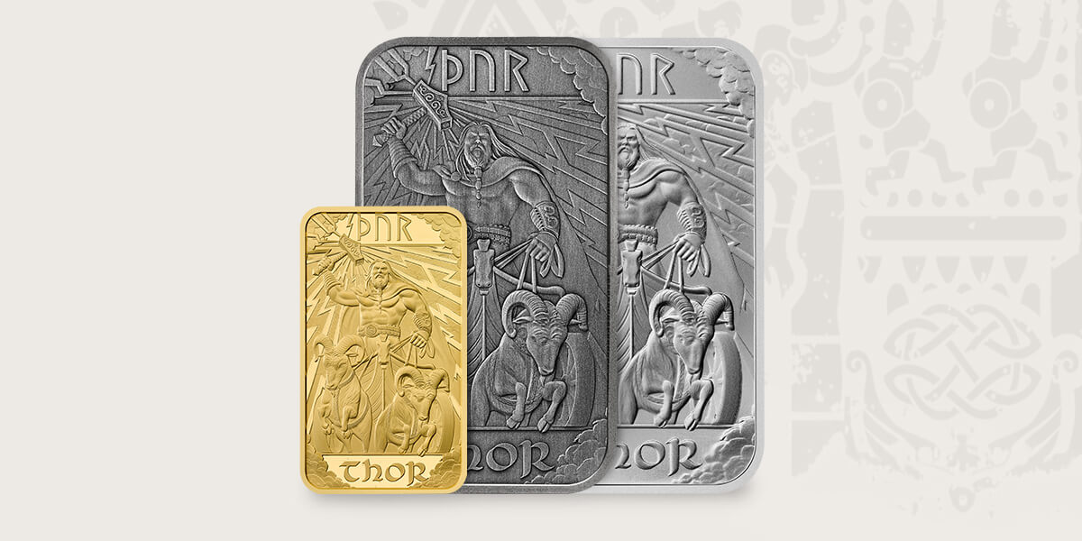 From Odin’s gold ring Draupnir, which drips eight new gold rings every ninth night, to Glasir, the grove in front of Valhalla whose foliage consists entirely of red gold, precious metals often appear in Norse mythology. Now, we honour these powerful and alluring figures with a new collection of minted bullion bars, available in gold and silver.