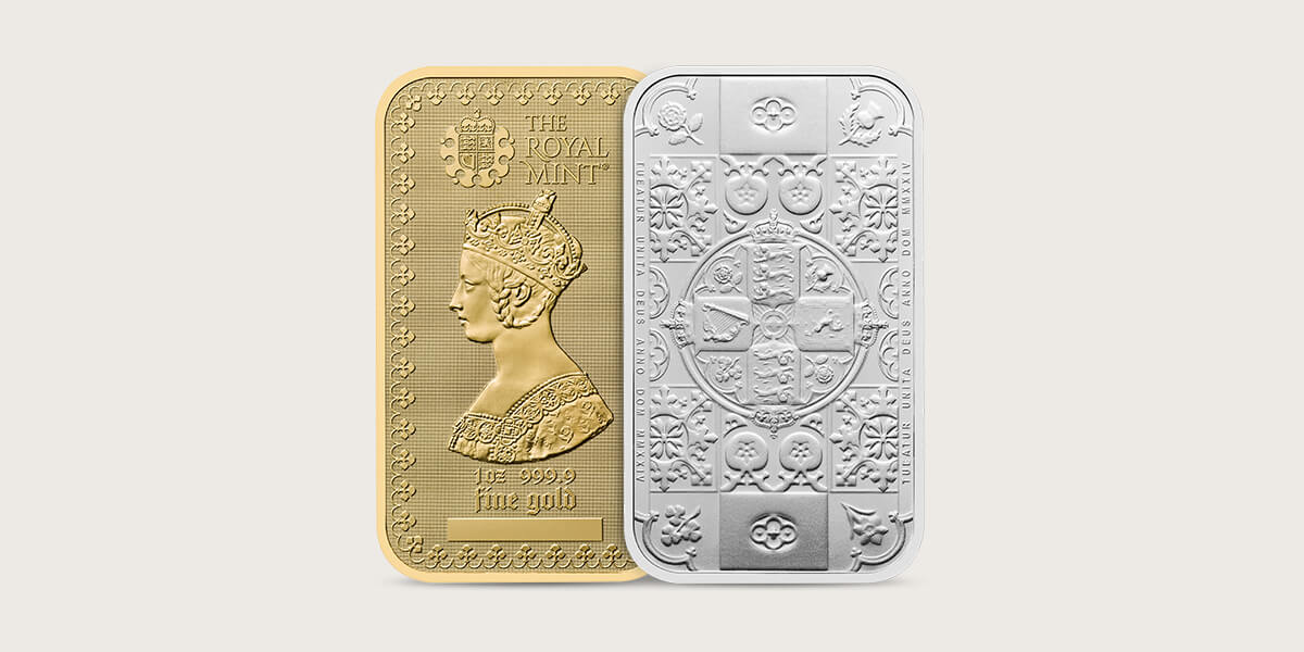 Minted in gold and silver, each Gothic Crown bullion bar is available in strictly limited numbers.