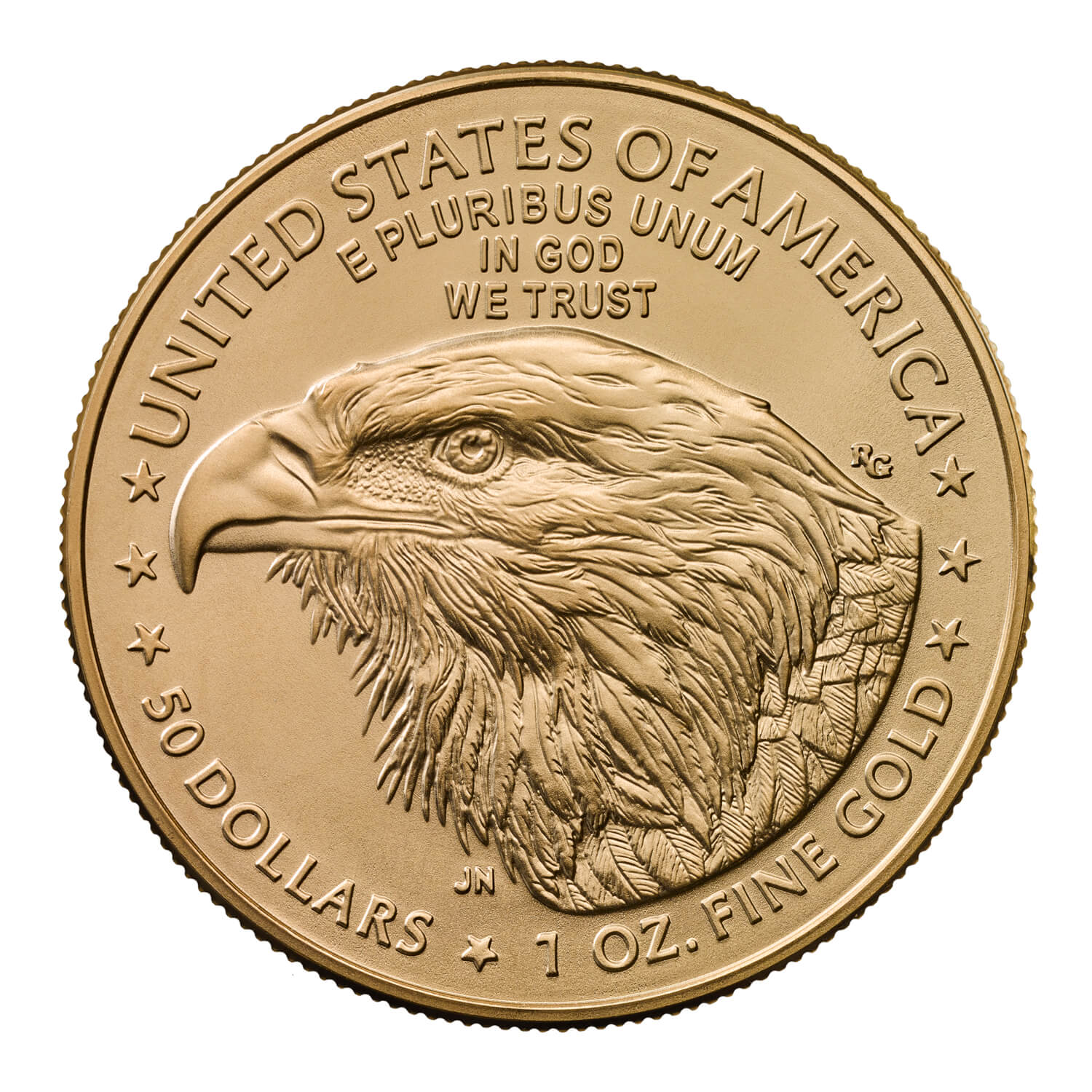 The American Eagle is produced by the United States Mint and was first introduced in 1986. The 1oz gold Eagle coin is struck in 22 carat gold (916.7) and contains one troy ounce of pure gold.