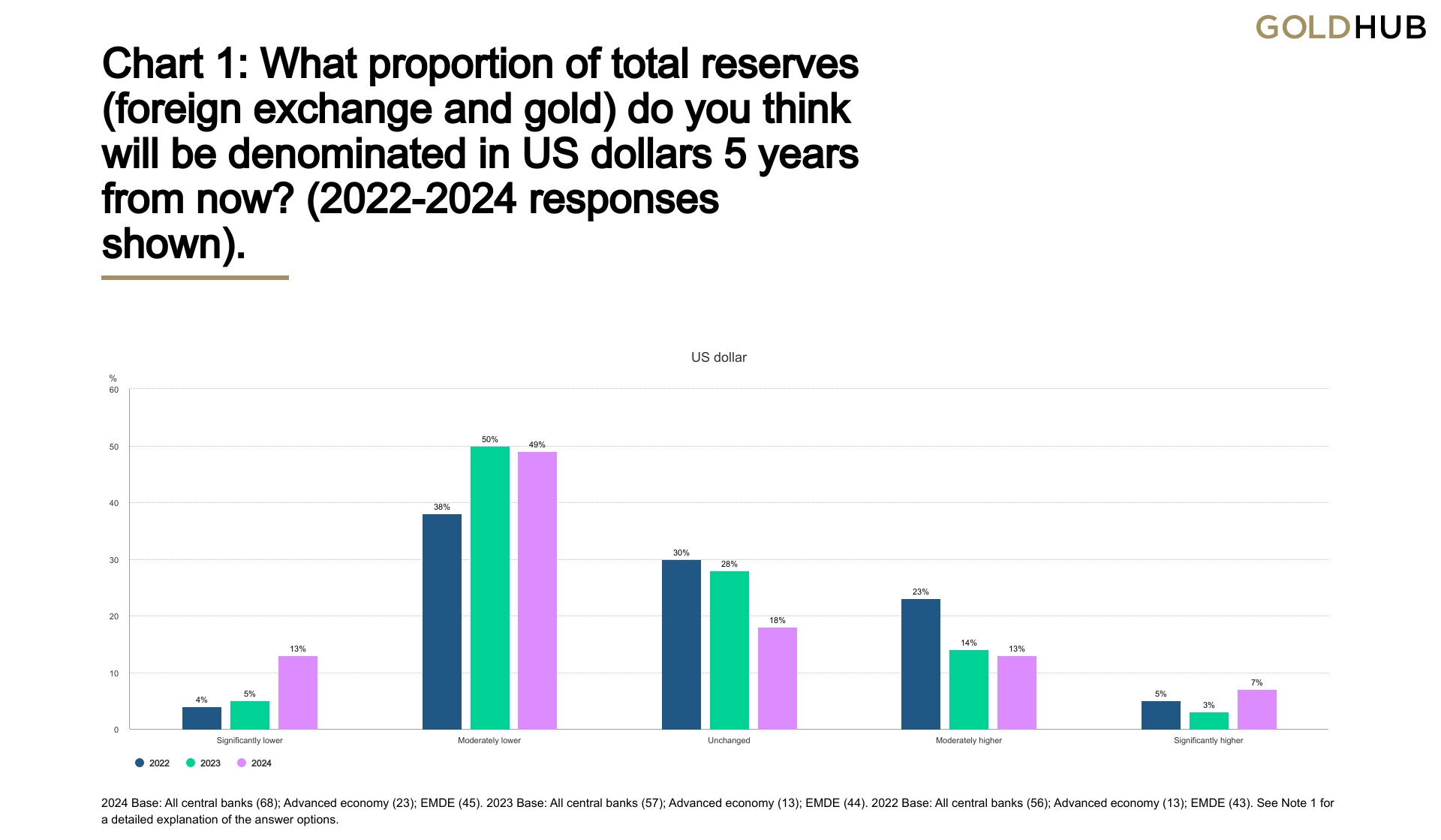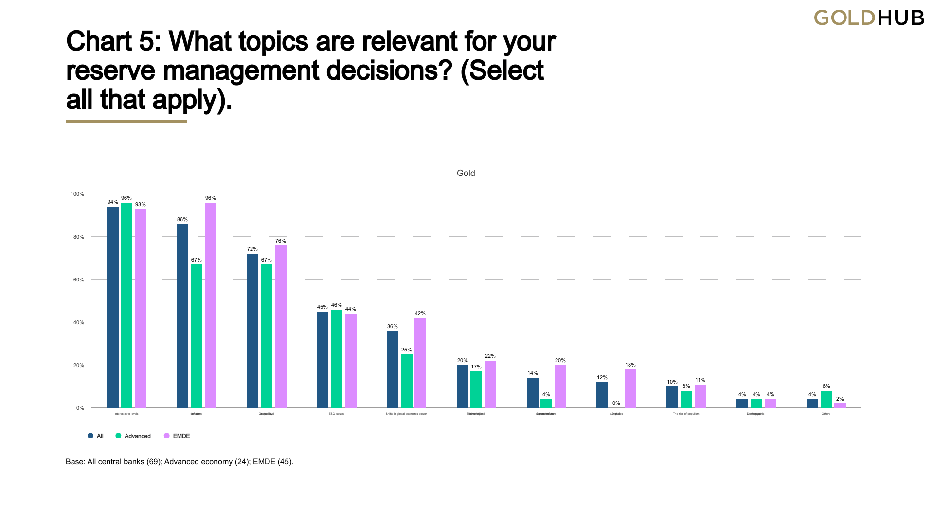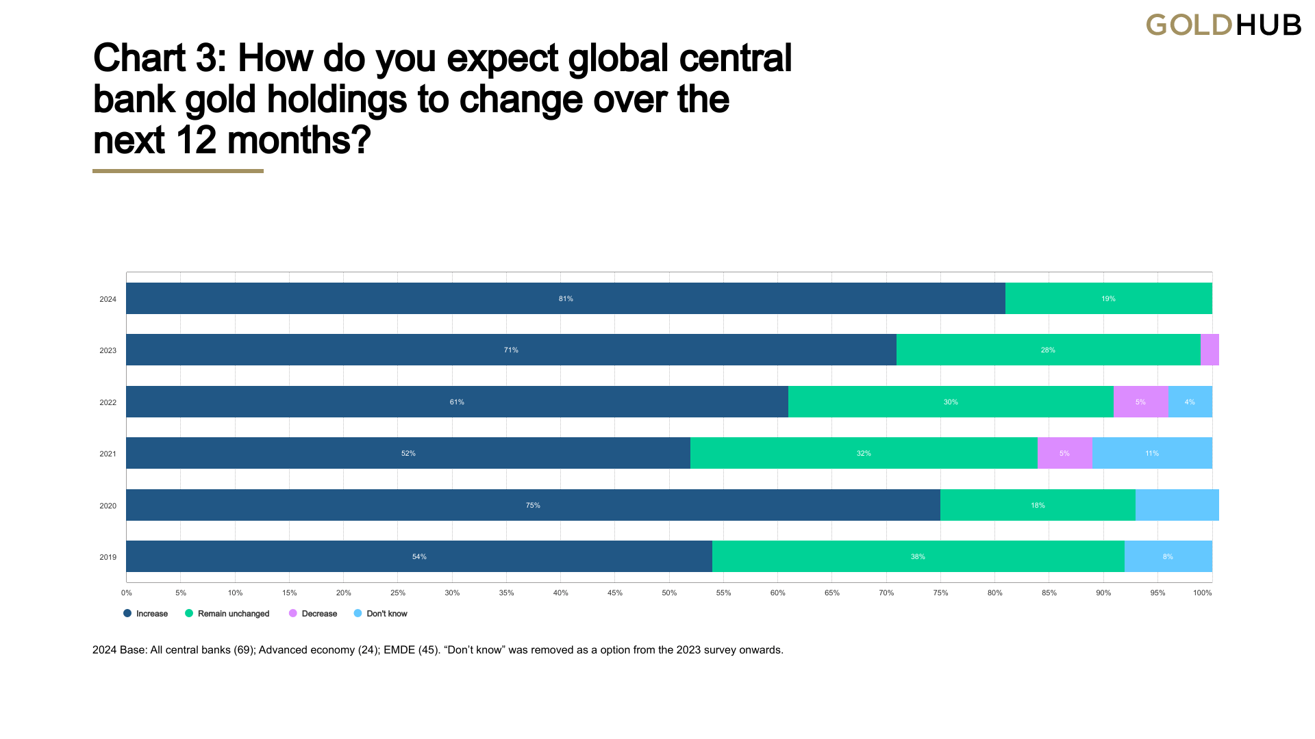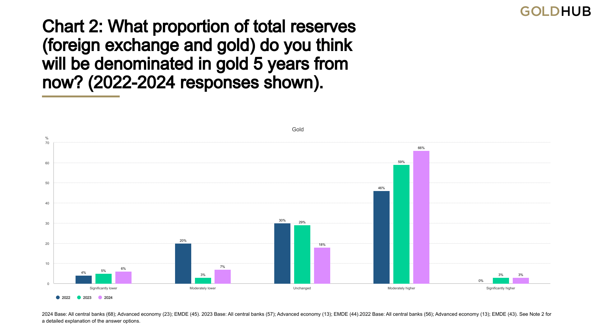 Following these record numbers, gold continues to be viewed favourably by central banks as a reserve asset. According to the 2024 Central Bank Gold Reserves (CBGR) survey, which was conducted between 19 February and 30 April 2024 with a total of 70 responses, 29% of central banks respondents intend to increase their gold reserves in the next twelve months, the highest level observed since the survey began in 2018. The planned purchases are chiefly motivated by a desire to resemble a more preferred strategic level of gold holdings, domestic gold production, and financial market concerns including higher crisis risks and rising inflation.