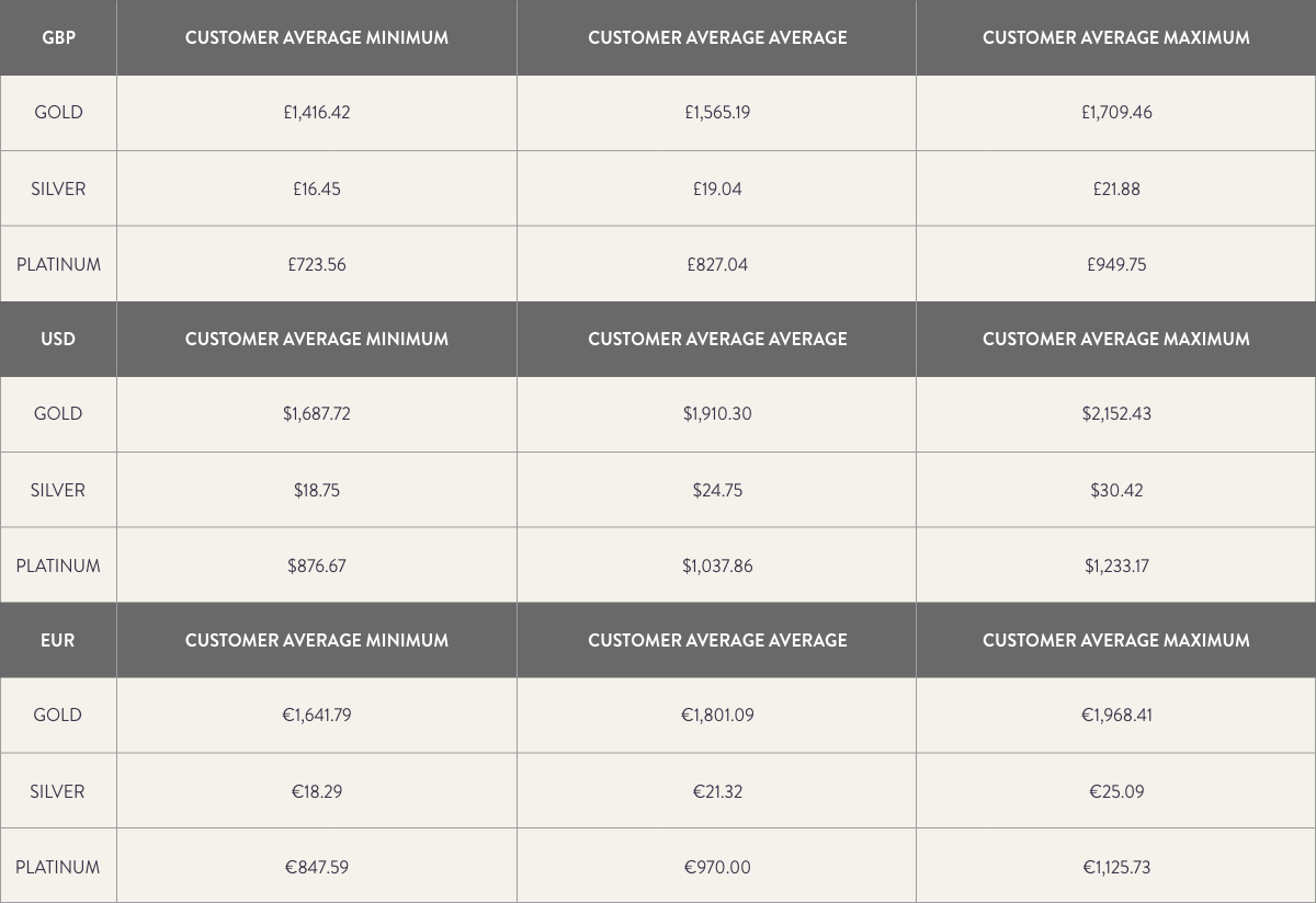 More than 1,700 customers responded to our survey, in which we offered the chance to win a Britannia 2023 1oz gold coin, a Britannia 2023 1oz silver coin and a Britannia 2023 1oz platinum coin to the customers who predict most accurately the average price of each respective precious metal this year.