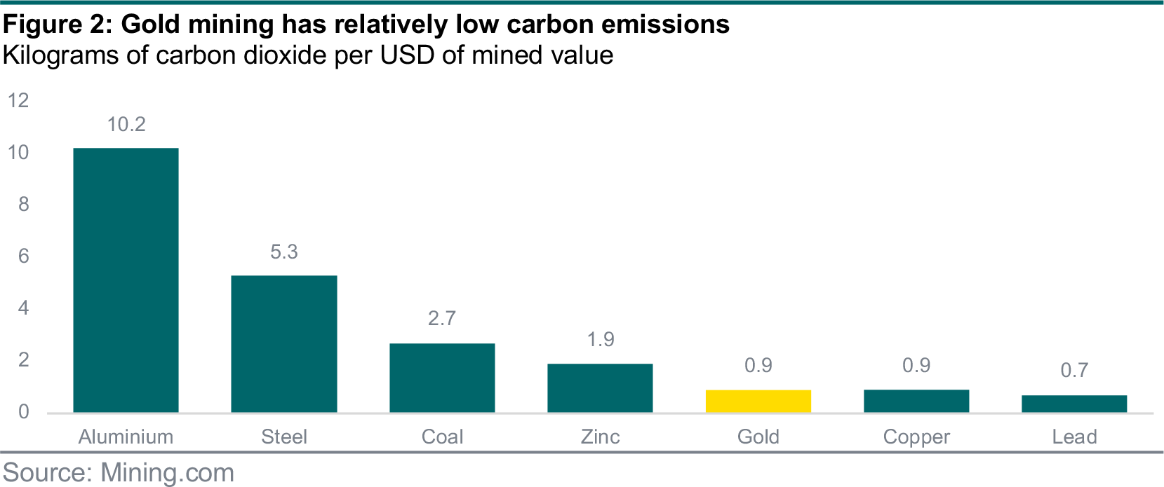 A possible solution to this is focusing on the best-in-class ESG gold miners, that are sourcing their gold responsibly, and sustainably. This can reduce the relatively low carbon intensity of gold mining even further, limiting the emissions footprint of an investors’ portfolio.