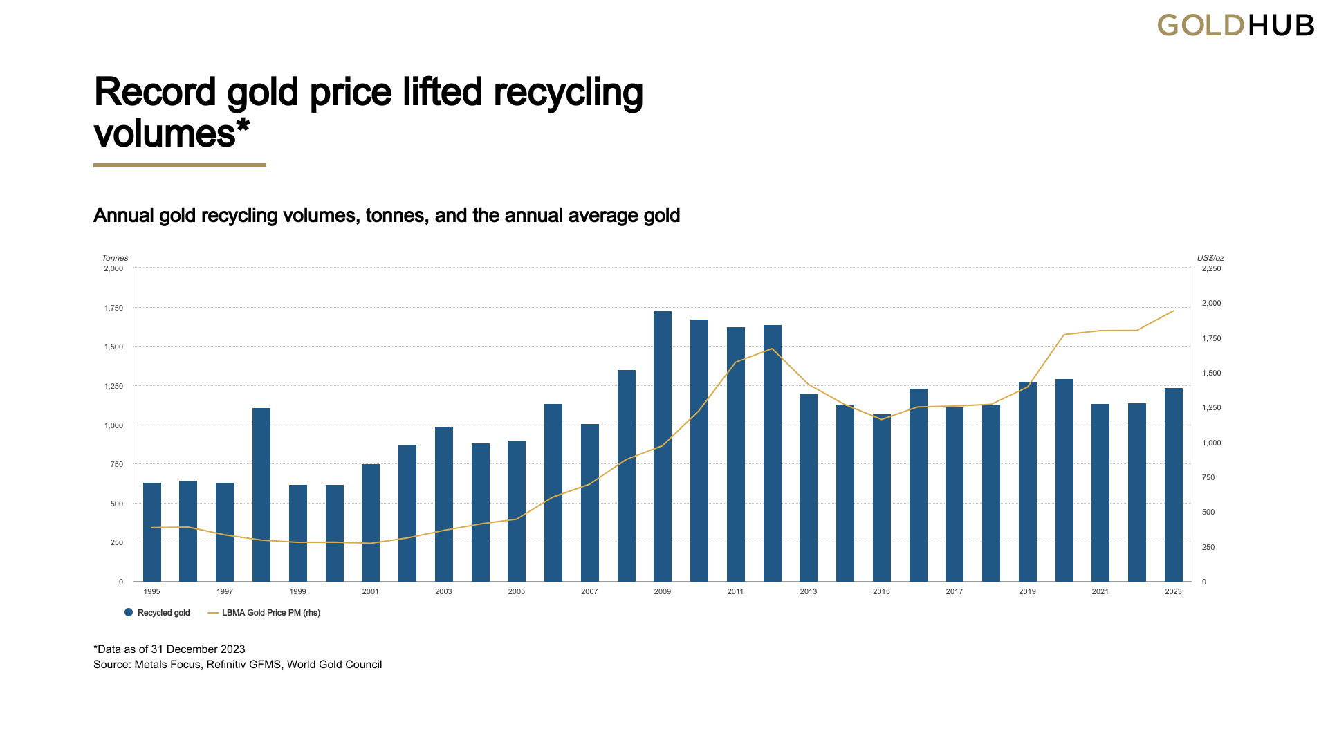 Source: Metals Focus; Refinitiv GFMS; World Gold Council. Data as of 31/12/2023. For illustrative purposes only.
