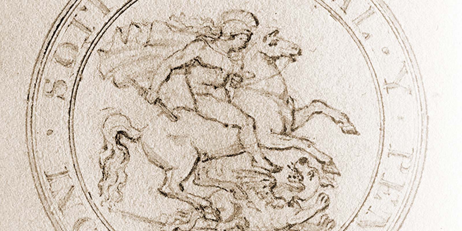Following the defeat of Napoleon at Waterloo, a great coinage reform was undertaken in Britain and gold was adopted as the ‘sole Standard Measure of Value’. As the Gold Standard was introduced, a new gold 20-shilling coin was created and given the revived name of Sovereign. Almost half the weight and diameter of the original Sovereign, the new gold coin of 1817 more than matched its predecessor in the beauty of its design. The traditional heraldic reverse was abandoned in favour of a Greek-inspired St George and the dragon by the Italian engraver Benedetto Pistrucci, a design of great classical beauty and widely recognised as a masterpiece of numismatic art.
